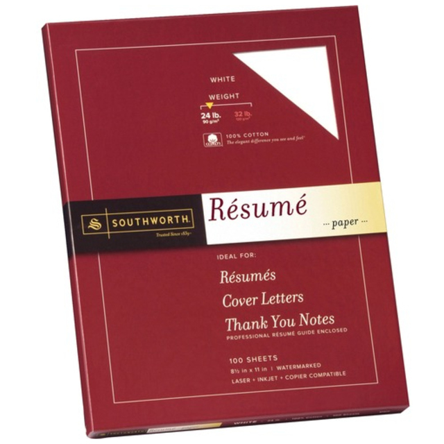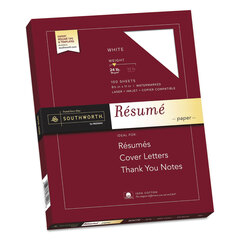 southworth 100% Cotton Resume Paper, 24lb, 95 Bright, 8 1/2 x 11, 100 Sheets