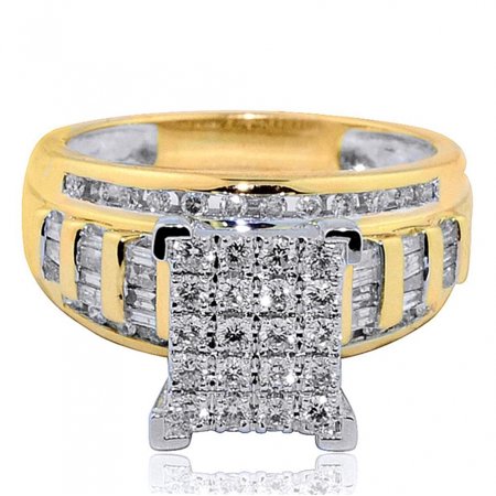 <p>1cttw Diamond Wedding Ring 3 in 1 Style Engagement & Bands Yellow Gold(I/J Color, i2-i3 Clarity)(i2-i3 Clarity, 1 cttw) Item Type: wedding-ring-sets Metal Type: 10K yellow-gold Gem Type: white-diamond, Images are enlarge to show details, All gem weight and metal weight are approximate values. Our colored diamondsa are irradiated to produce color, gemstones may be heat treated. All our Diamond jewelry comes with 90 days limited warranty, Ring sizing if requested will incurr additional fees and sizing fees are not included in the purchase price. Sizing may take 1-2 additional days</p> <ul> <li>Item Type: wedding-ring-sets Metal Type: 10K yellow-gold Gem Type: white-diamond,</li> <li>10MM Wide ring with round and baguette cut diamonds, stunning Princess cut Styled Square Top with Rond Diamonds</li> <li>10K White Gold or Yellow Gold with 1ctw Diamonds, large wedding ring, anniversary or cocktail ring</li> <li>Availble in size 7, for all other sizes ring will be sized before shipping and will take 1 additional day</li> <li>Fine Rings Collection</li> </ul>