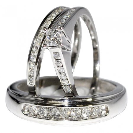 <p>Bridal Trio Rings Set Princess Cut Diamonds 3/4cttw 10K White Gold His and Her rings(I2-I3 Clarity, 0.75cttw) Images are enlarge to show details, All gem weight and metal weight are approximate values. Our colored diamondsa are irradiated to produce color, gemstones may be heat treated. All our Diamond jewelry comes with 90 days limited warranty, Ring sizing if requested will incurr additional fees and sizing fees are not included in the purchase price. Sizing may take 1-2 additional days</p> <ul> <li>Item Type: wedding-ring-sets Metal Type: 10K white-gold Gem Type: white-diamond, Measurement : 10MM</li> <li>Image has been enlarged to view details, Fine Diamond wedding-ring-sets Collection by Midwestjewellery</li> <li>Rings available in standard size 7</li> <li>Ships within 24 hours of cleared payment, signature required on delivery.</li> <li></li> </ul>