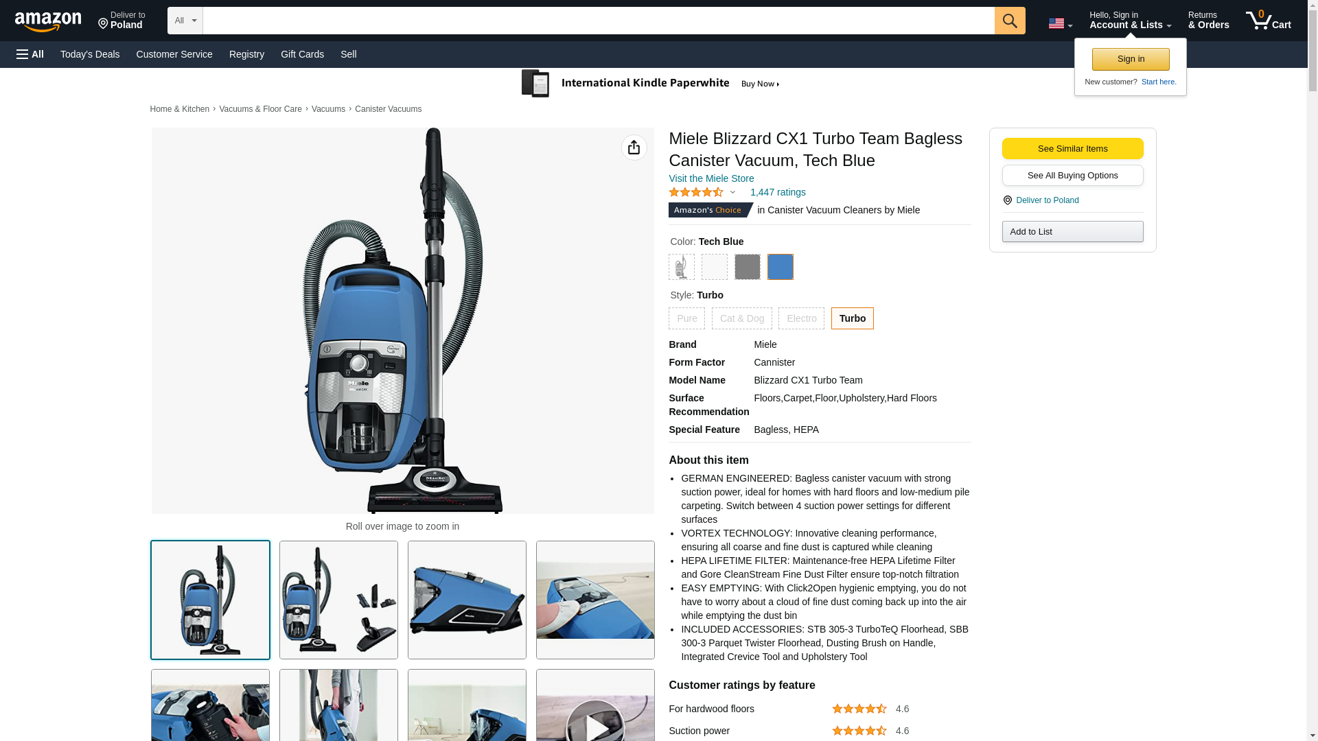 Miele Blizzard CX1 Turbo Team Bagless Canister Vacuum, Tech Blue - Portable, Household