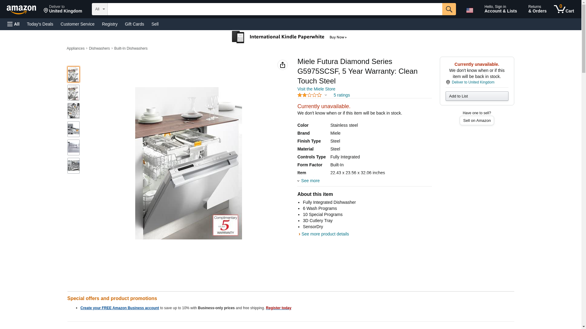 Miele Futura Diamond Series G5975SCSF, 5 Year Warranty: Clean Touch Steel