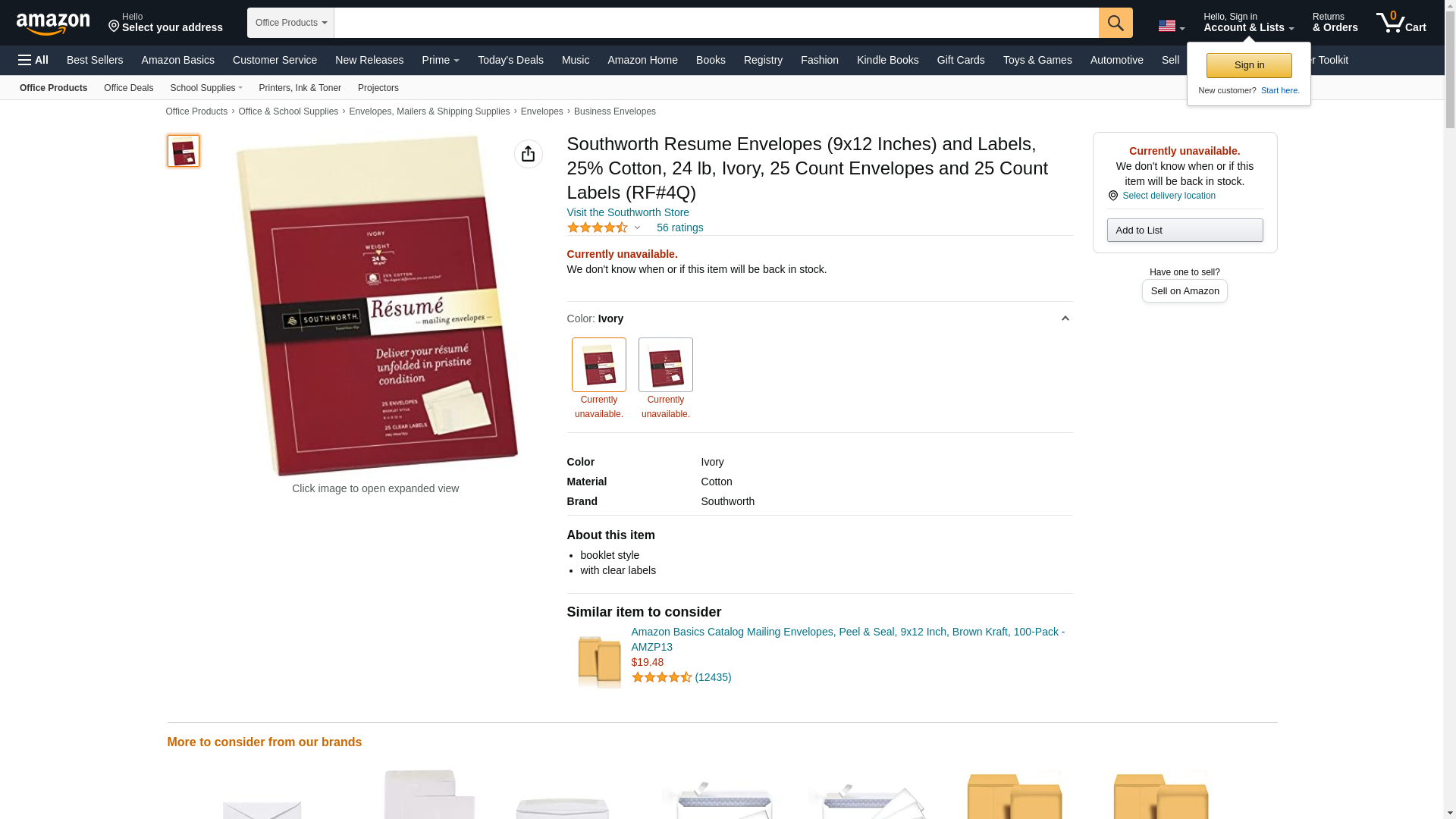 Southworth Resume Envelopes (9x12 Inches) and Labels, 25% Cotton, 24 lb, Ivory, 25 Count Envelopes and 25 Count Labels (RF#4Q)