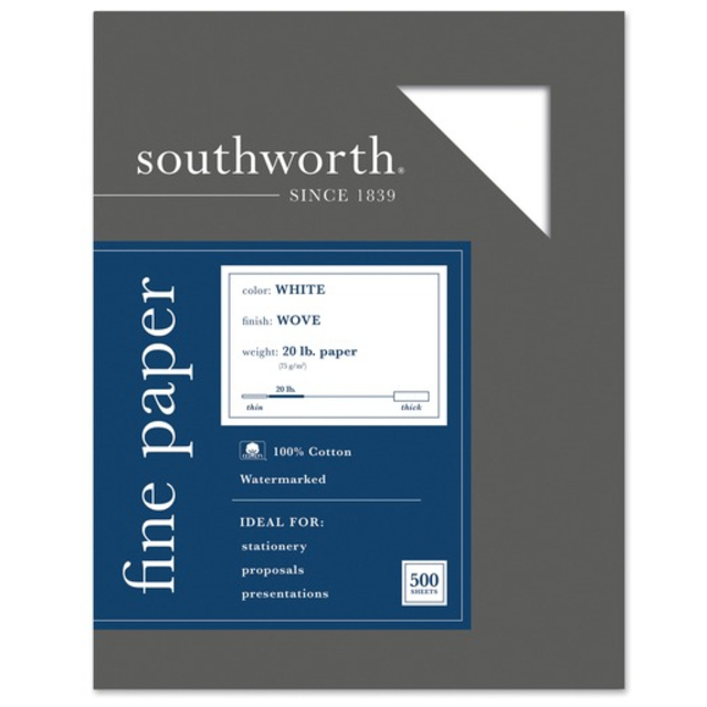 southworth 100% Cotton Business Paper, 20lb, 95 Bright, 8 1/2 x 11, 500 Sheets