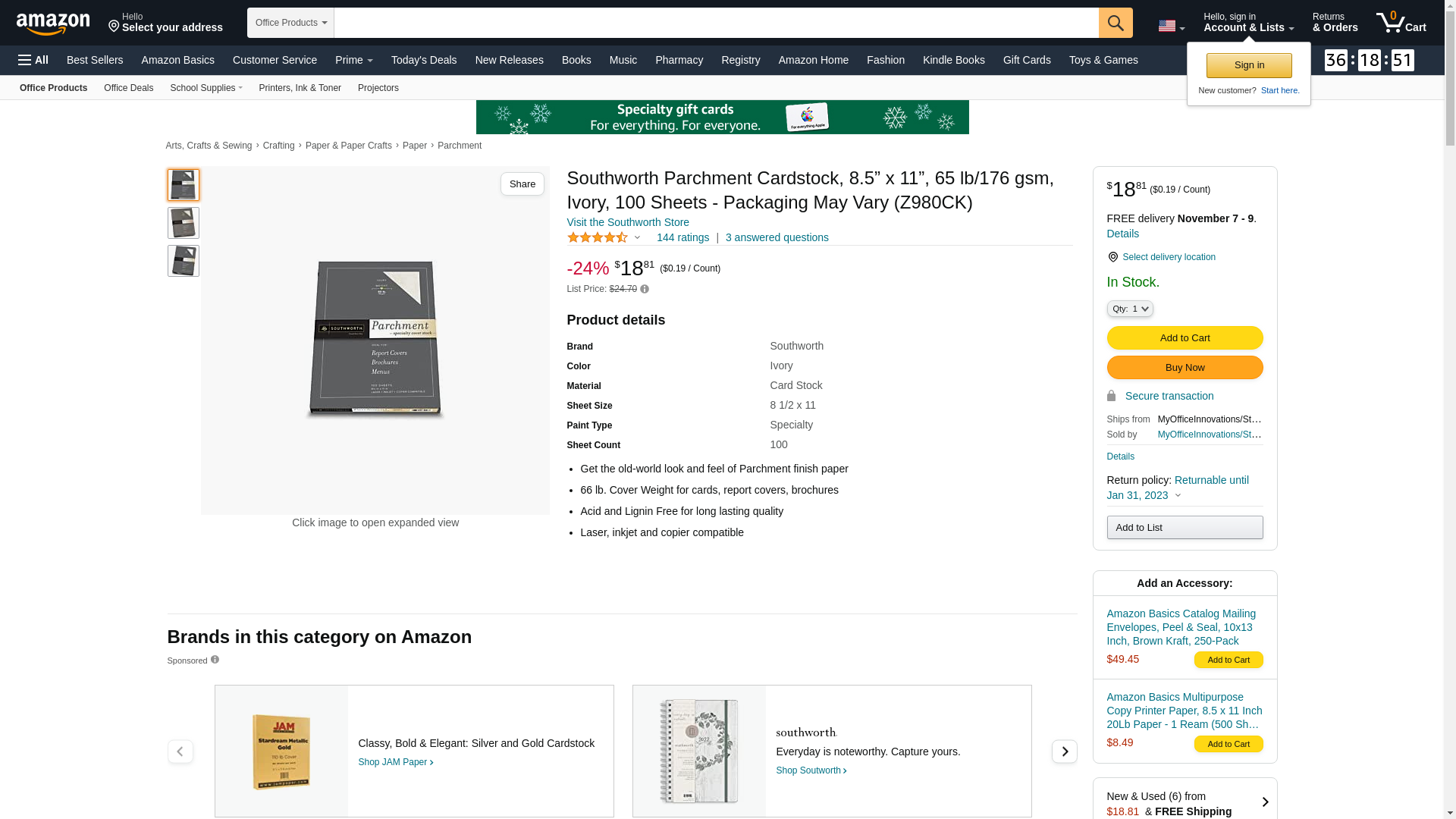 Southworth Parchment Specialty Cover Stock, Ivory, 65 Pounds, 100 Count (Z980CK). Subtle parchment-look for special d...