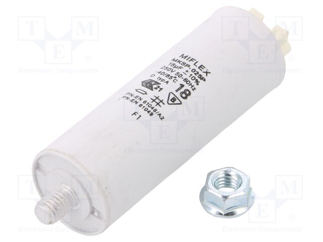 MIFLEX I520U618K-F00 | Capacitor: for discharge lamp; 18uF; 250VAC; ?10%; ?35x83mm; 6