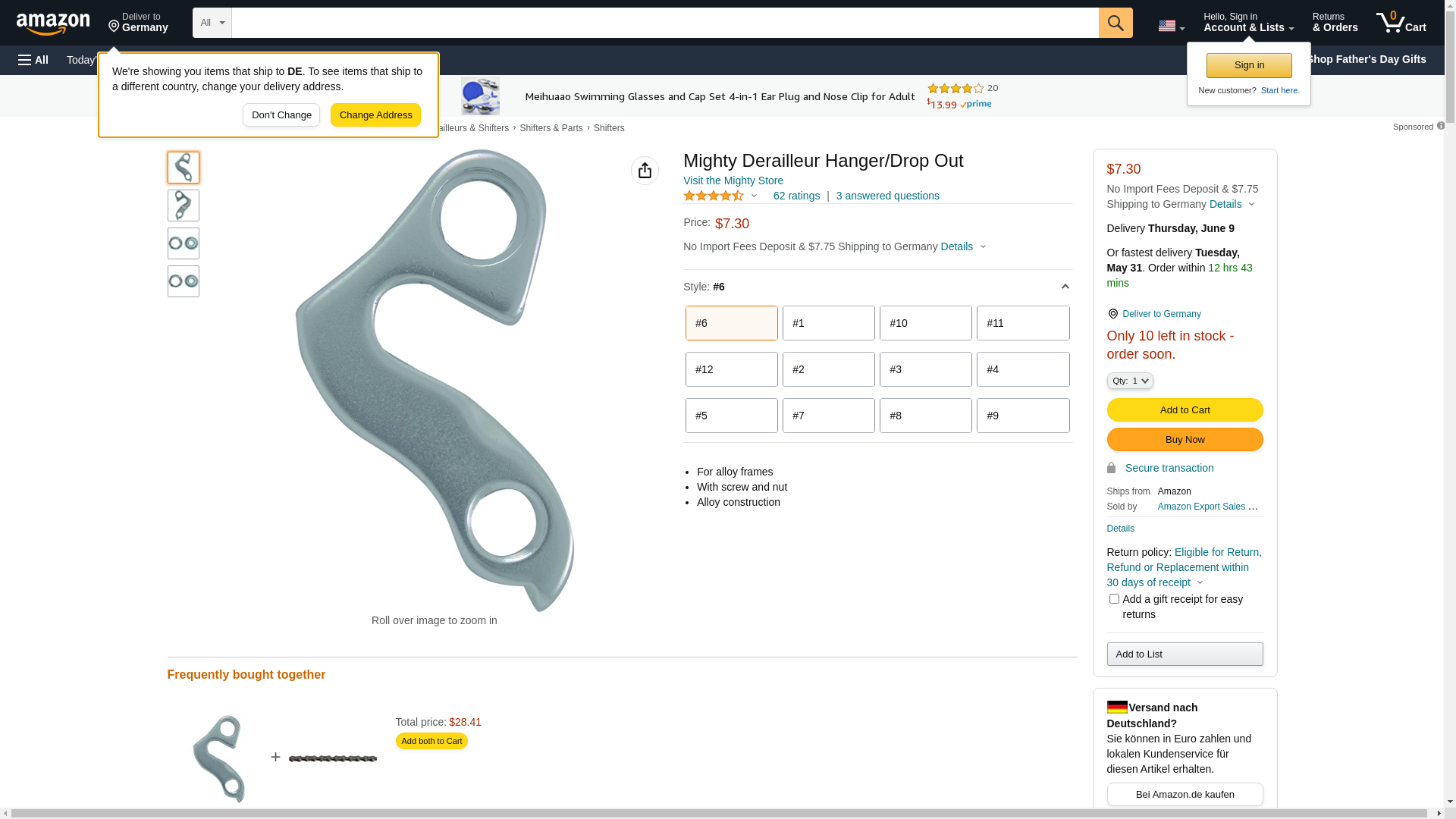 Mighty 660846 Silver Alloy Derailleur Hanger & Drop Out No. 6
