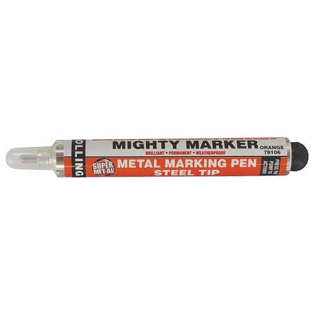 | Feature | <b>Price For:</b> Each <b>Features</b>: Writes through Oil, Grease, and Underwater. Writes on all surfaces. 25-30 minute Dry Time. Pressure Bulb controls paint flow. <b>Standards</b>: OSHA, ASTM D-4236 <b>Item</b>: Rolling Ball Pump Action Oil-Based Paint Marker with Stainless Steel Tip <b>Tip Size</b>: Medium <b>Color</b>: Orange <b>Country of Origin (subject to change)</b>: United States |