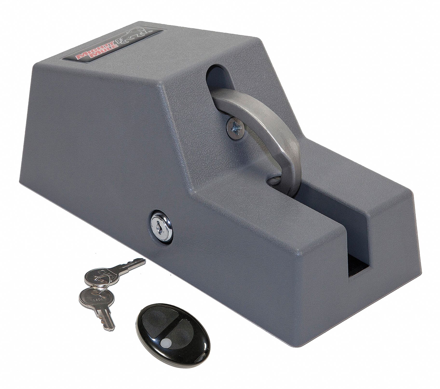 The Mighty Mule Remote Controlled Cable Gate Lock is an automated lock system for openings up to 30 feet wide to with cables, chains and ropes that weigh up to 75 lbs. Thanks to its remote control transmitter, you'll never have to get out of your car at your property entrance again. Also works great with boats, trailers and anything else secured with a chain or cable. Dimensions L x W x H in. 10 x 7 x 13, Battery Type AA, Product Style Automatic lock, Length in. 13, Lock Type Electro-mechanical, Battery Included No, Material Type Steel, Product Type Gate lock, Batteries Required Yes. Automated lock system lets you release cables, chains and ropes from inside your vehicle Automate lock with remote control transmitter or use optional digital keypad for multi-person entry Provides convenient multiple user access to property or items like boats, trailers and anything else secured with chains or cables For cabled openings up to 30-ft.W For cables, chains or ropes up to 75 lbs. Bind-proof lock eyelet 500-lb. holding force Keyed manual release Uses 8 AA batteries not included Mounts to round or square metal and wood posts mounting hardware not included Model Number: FM245. Size: L. Age Group: Adult.