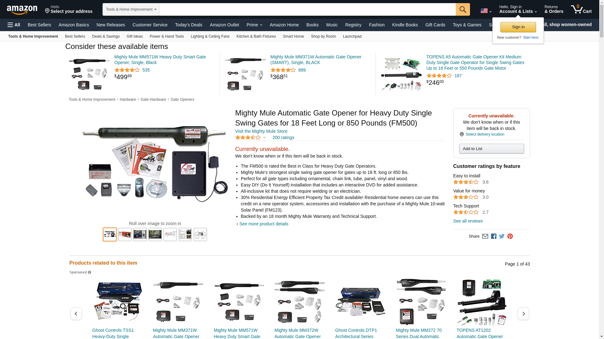Mighty Mule Automatic Gate Opener for Heavy Duty Single Swing Gates for 18 Feet Long or 850 Pounds (FM500)