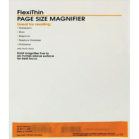 <br /> <b>Mighty Bright FlexiThin Magnifier, 10, 3/4" x 7", Page Size:</b> <ul> <li>A very economical way to magnify any object or text</li> <li>Perfect for reading directions and small text</li> <li>Ultra-thin sheet magnifiers made of light flexible unbreakable PVC</li> <li>Very handy great for small print keep one everywhere</li> <li>Size: 10 3/4" x 7</li> <li>1 per package</li> </ul>