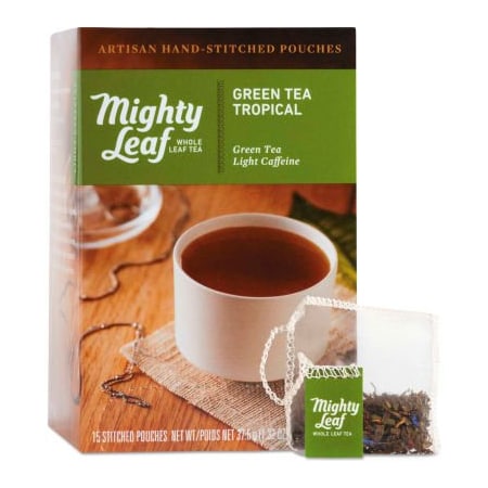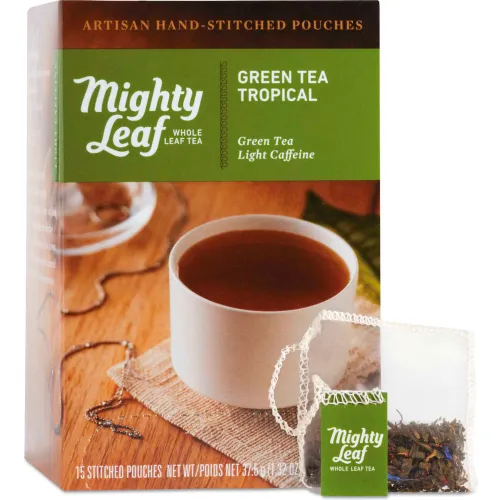 - Contains one (1) Box of 15 Mighty Leaf Green Tea Tropical Green Whole Leaf Tea Bags. Packaging May Vary