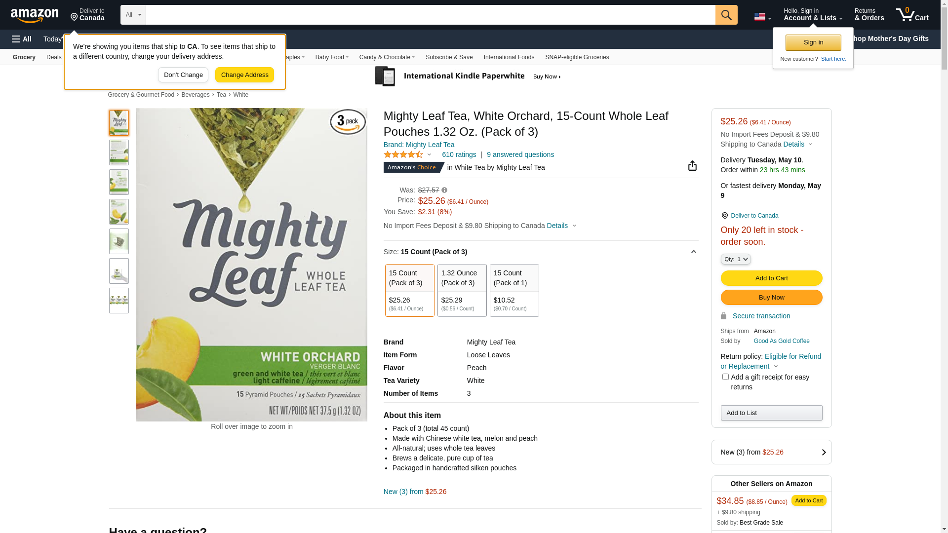 - Mighty Leaf Tea, White Orchard, 15-Count Whole Leaf Pouches 1.32 Oz. (Pack of 3)