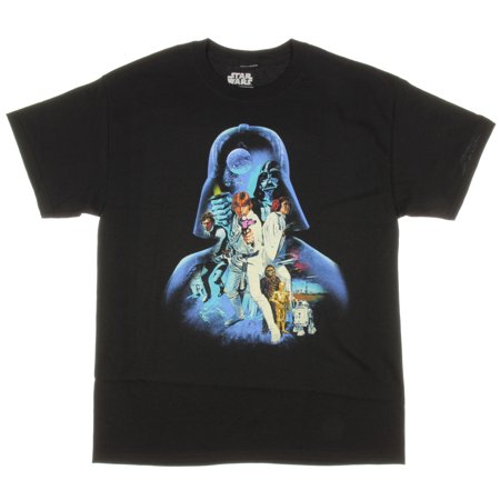 Star Wars is the greatest story told! It starts in a far far away galaxy.. Good vs. Evil. The Dark Side vs. The Force. An unlikely hero is part of the brave alliance fighting against Darth Vader and the Galactic Empire. This shirt features classic star wars characters.