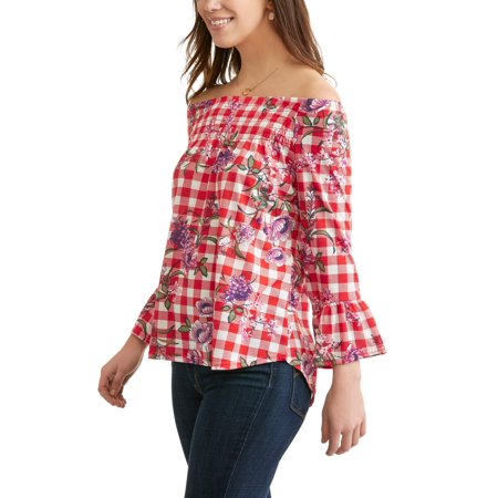 <ul> <li>Printed polyester fabric</li> <li>Flowy and feminine body</li> <li>Smocked neckline</li> <li>Ruffle sleeve</li> <li>Slight high low curved hemline</li> </ul>