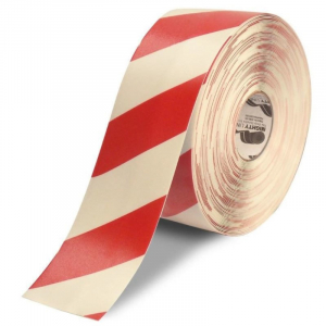 Mighty Line Diagonal Floor Tape 4 inch White/Red 100' Roll