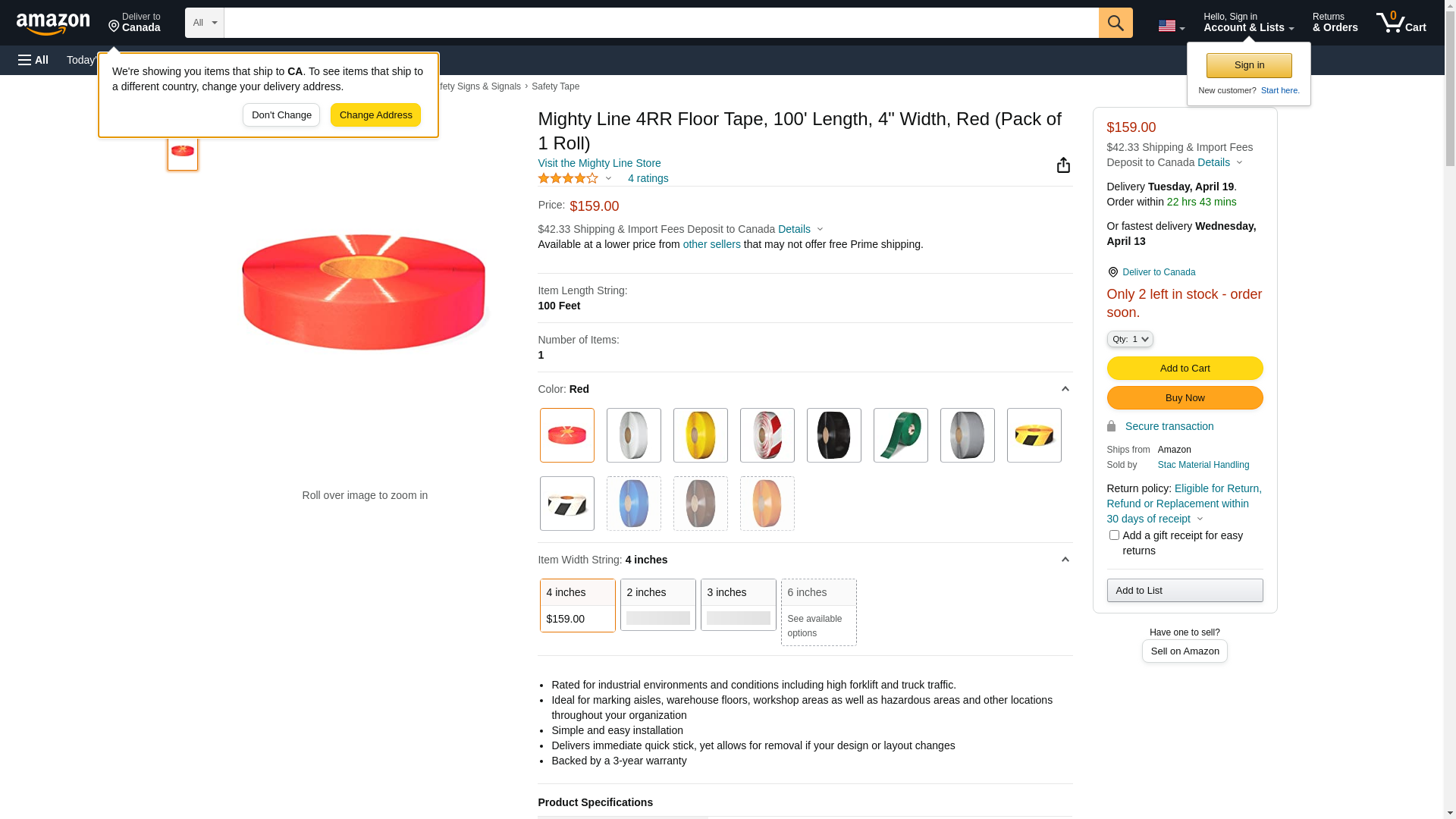 Mighty Line 4RR Floor Tape 4-Inch by 100-Feet, Red