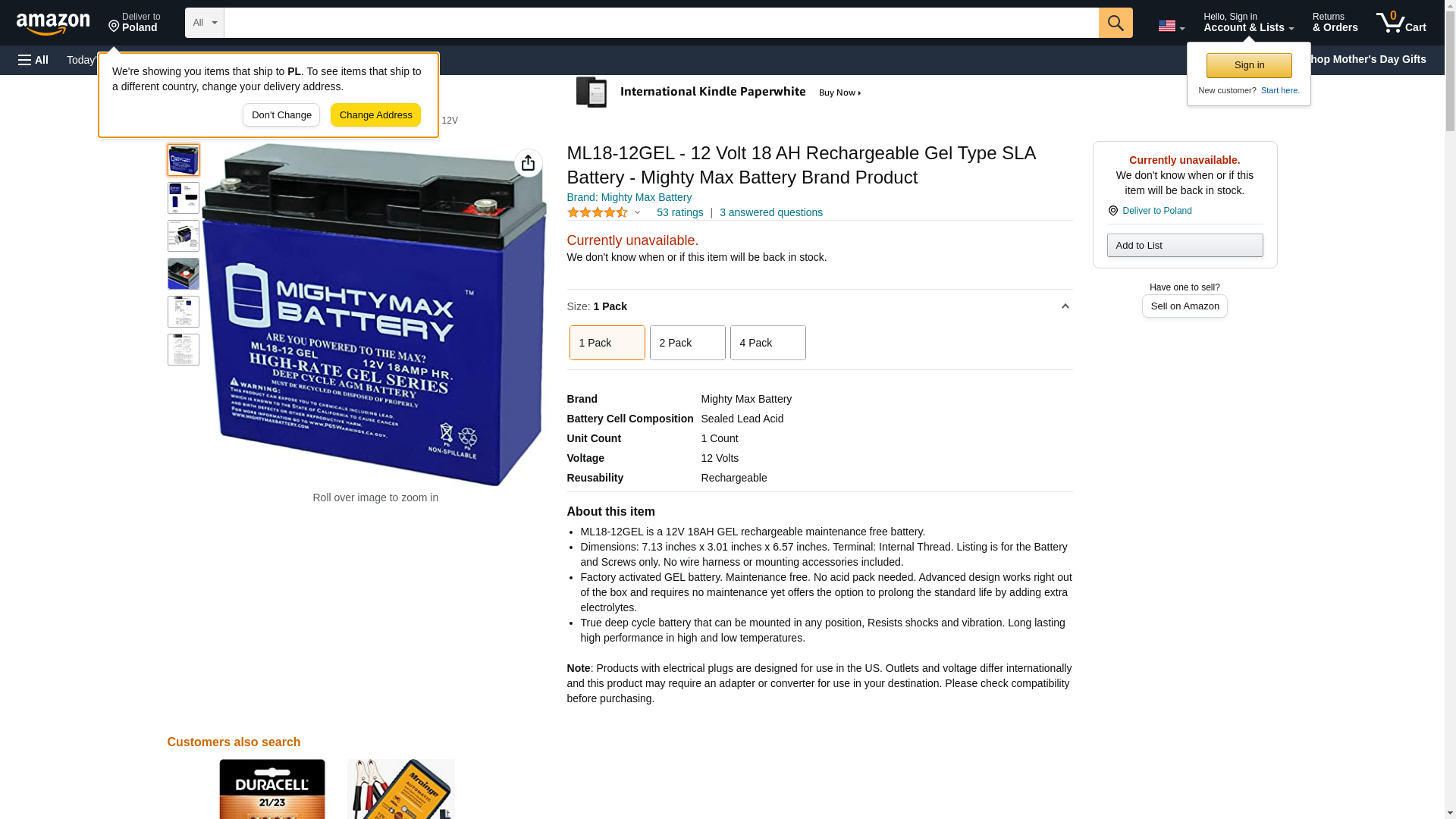 ML18-12GEL - 12 Volt 18 AH Rechargeable Gel Type SLA Battery - Mighty Max Battery Brand Product: Maxedbuy.com