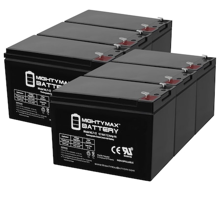 Delivering power when you need it, the Mighty Max ML7-12 12 Volt 7.2 AH uses a state of the art, heavy-duty, calcium-alloy grid that provides exceptional performance and service life in both float and cyclic applications.<br>The ML7-12 is an Absorbent Glass Mat (AGM) technology with a valve regulated design, that can be used in enclosed and indoor environments without leaking or maintenance, providing a superior performance for thousands of models.<br>Mighty Max SLA batteries are utilized in a wide variety of applications including; Consumer Electronics, Electric Vehicles, Engine Starters, Golf Carts, Hunting, Lawn and Garden Tools, Medical Mobility, Motorcycles, Power sports, Portable Tools, Solar, Toys and Hobby, Access Control Devices, Emergency Lighting, Security and more.<br><b>Specifications: </b><br>Voltage: 12 Volt<br>Amperage: 7.2 AH<br>Chemistry: SLA, AGM<br>Terminal: F1<br>Quantity: 6 Batteries<br><b>Battery Dimensions: </b><br>5.94 in x 2.56 in x 4.02 in<br>Weight: 4.50 Lbs<br><b>Warranty</b><br>1 Year <br/>Genuine Mighty Max battery Product