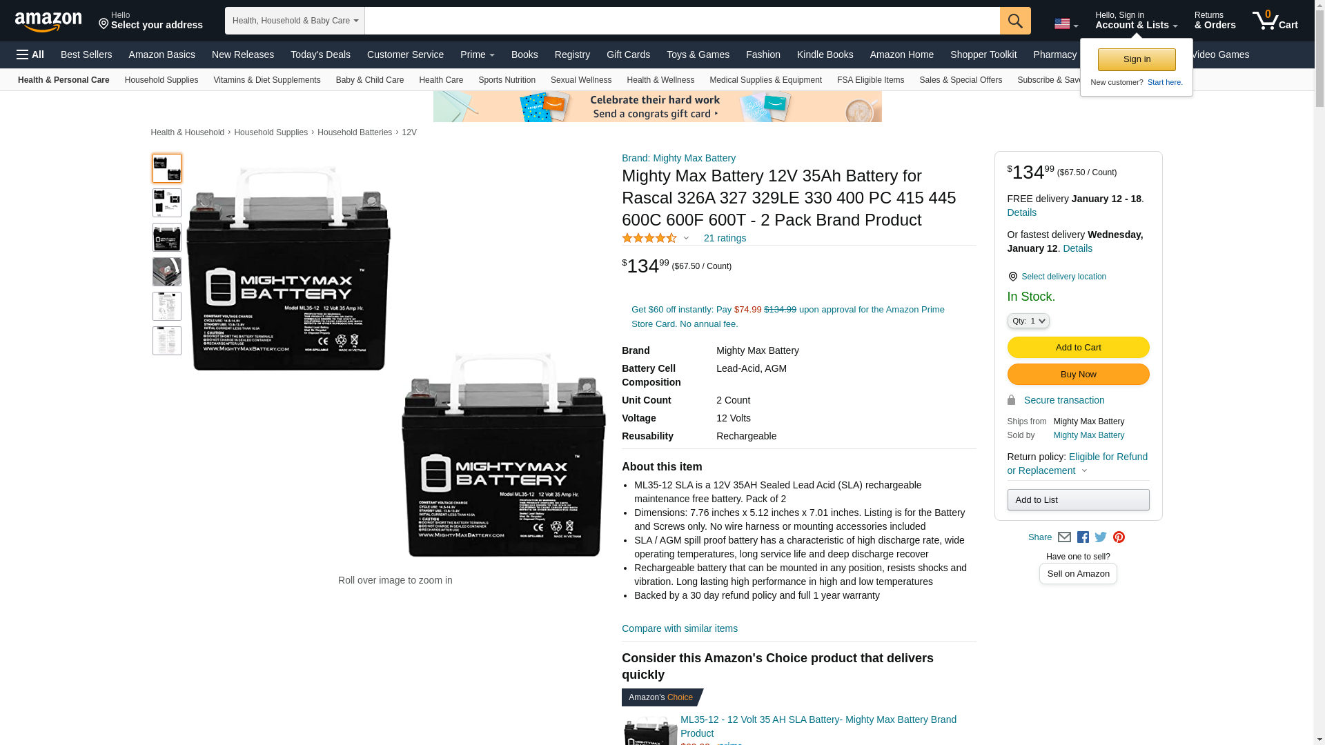 Delivering power when you need it, the Mighty Max ML35-12 12 Volt 35 AH uses a state of the art, heavy-duty, calcium-alloy grid that provides exceptional performance and service life in both float and cyclic applications. The ML35-12 is an Absorbent Glass Mat AGM technology with a valve regulated design, that can be used in enclosed and indoor environments without leaking or maintenance, providing a superior performance for thousands of models. Mighty Max SLA batteries are utilized in a wide variety of applications including; Consumer Electronics, Electric Vehicles, Engine Starters, Golf Carts, Hunting, Lawn and Garden Tools, Medical Mobility, Motorcycles, Power sports, Portable Tools, Solar, Toys and Hobby, Access Control Devices, Emergency Lighting, Security and more.