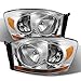 Xtune Chrome Headlights With Chrome Bezel & Amber Bar Dodge Ram 1500 | 2500 | 3500 2006-2009 | HD-JH-DRAM06-AM-C
