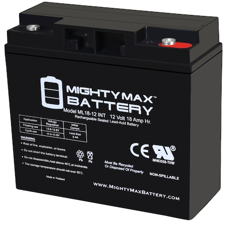 Delivering power when you need it, the Mighty Max ML18-12 Internal Thread 12 Volt 18 AH uses a state of the art, heavy-duty, calcium-alloy grid that provides exceptional performance and service life in both float and cyclic applications.<br>The ML18-12 Internal Thread is an Absorbent Glass Mat (AGM) technology with a valve regulated design, that can be used in enclosed and indoor environments without leaking or maintenance, providing a superior performance for thousands of models.<br>Mighty Max SLA batteries are utilized in a wide variety of applications including; Consumer Electronics, Electric Vehicles, Engine Starters, Golf Carts, Hunting, Lawn and Garden Tools, Medical Mobility, Motorcycles, Power sports, Portable Tools, Solar, Toys and Hobby, Access Control Devices, Emergency Lighting, Security and more. <br><b>Specifications: </b><br>Voltage: 12 Volt<br>Amperage: 18 AH<br>Chemistry: SLA, AGM<br>Terminal: Internal Thread<br><b>Battery Dimensions:</b><br>7.13 in x 3.01 in x 6.57 in<br>Weight: 11.90 Lbs<br><b>Warranty</b><br>1 Year <br/>Genuine Mighty Max battery Product