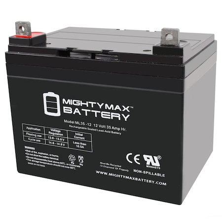 Delivering power when you need it, the Mighty Max ML35-12 12 Volt 35 AH uses a state of the art, heavy-duty, calcium-alloy grid that provides exceptional performance and service life in both float and cyclic applications.<br>The ML35-12 is an Absorbent Glass Mat (AGM) technology with a valve regulated design, that can be used in enclosed and indoor environments without leaking or maintenance, providing a superior performance for thousands of models.<br>Mighty Max SLA batteries are utilized in a wide variety of applications including; Consumer Electronics, Electric Vehicles, Engine Starters, Golf Carts, Hunting, Lawn and Garden Tools, Medical Mobility, Motorcycles, Power sports, Portable Tools, Solar, Toys and Hobby, Access Control Devices, Emergency Lighting, Security and more.<br><b>Specifications:</b><br>Voltage: 12 Volt<br>Amperage: 35 AH<br>Chemistry: SLA, AGM<br><b>Battery Dimensions:</b><br>7.76 in x 5.12 in x 7.01 in<br>Weight: 23.15 Lbs<br><b>Warranty</b><br>1 Year <br/>Genuine Mighty Max battery Product