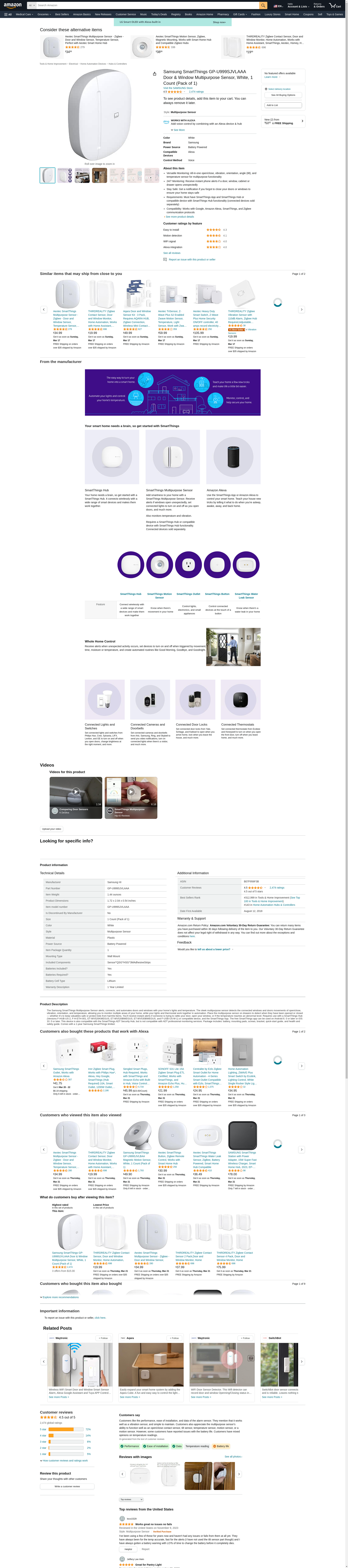 Samsung SmartThings GP-U999SJVLAAA Door & Window Multipurpose Sensor, White, 1 Count (Pack of 1)
