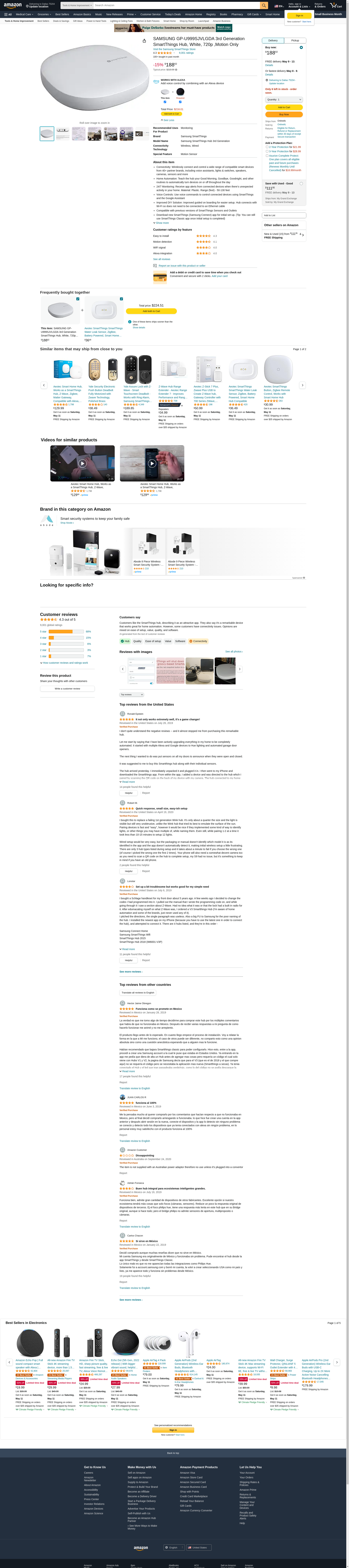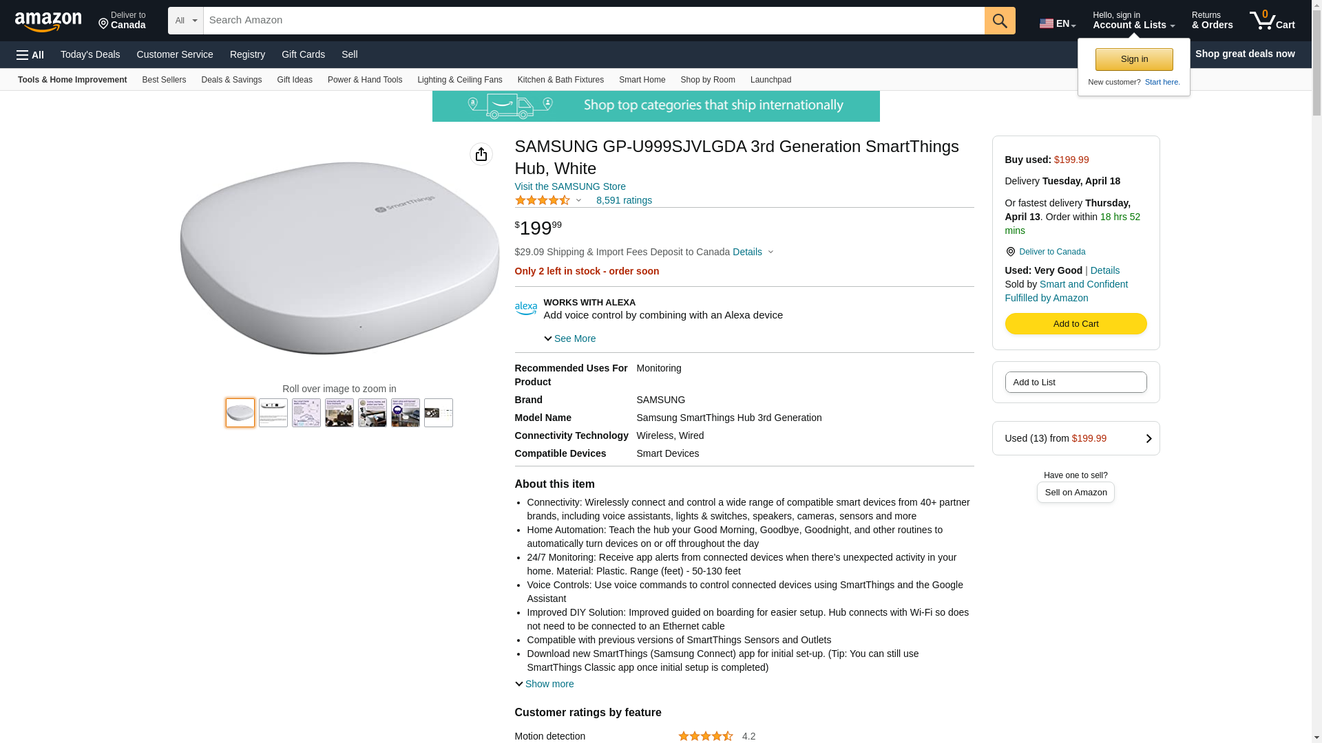 SAMSUNG GP-U999SJVLGDA 3rd Generation SmartThings Hub, White, 720p ,Motion Only