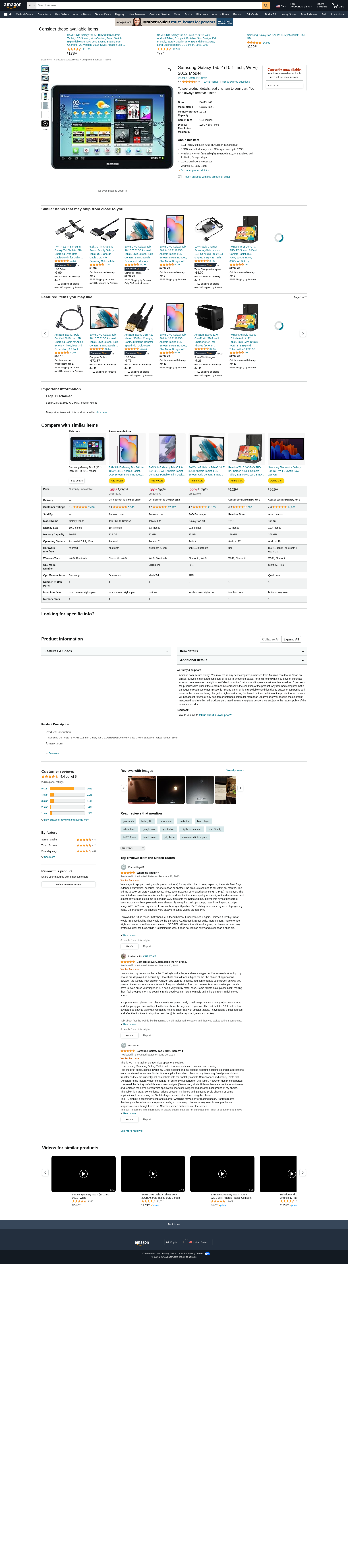 Samsung Galaxy Tab 2 (10.1-Inch, Wi-Fi) 2012 Model