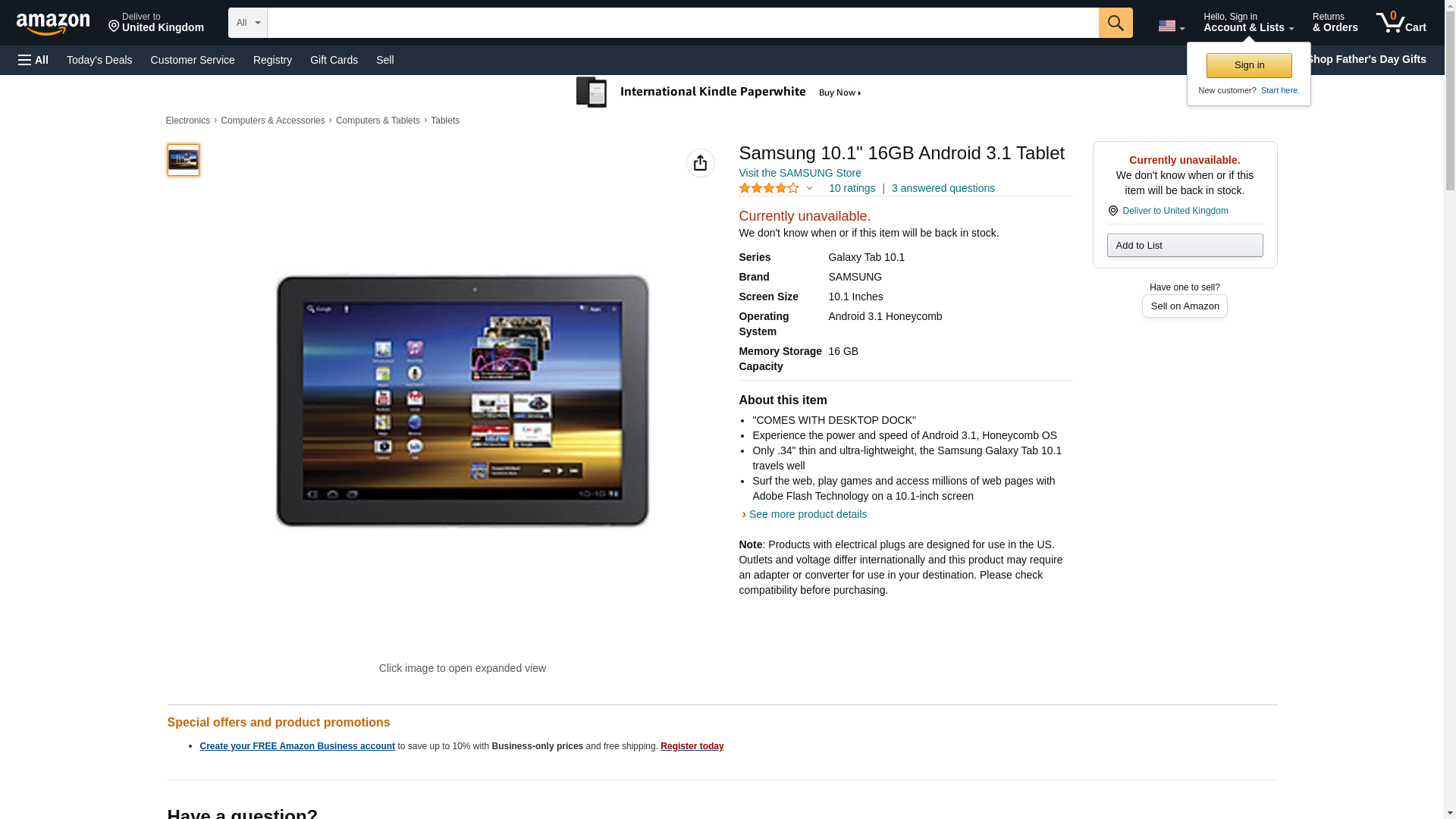 Samsung 10.1" 16GB Android 3.1 Tablet