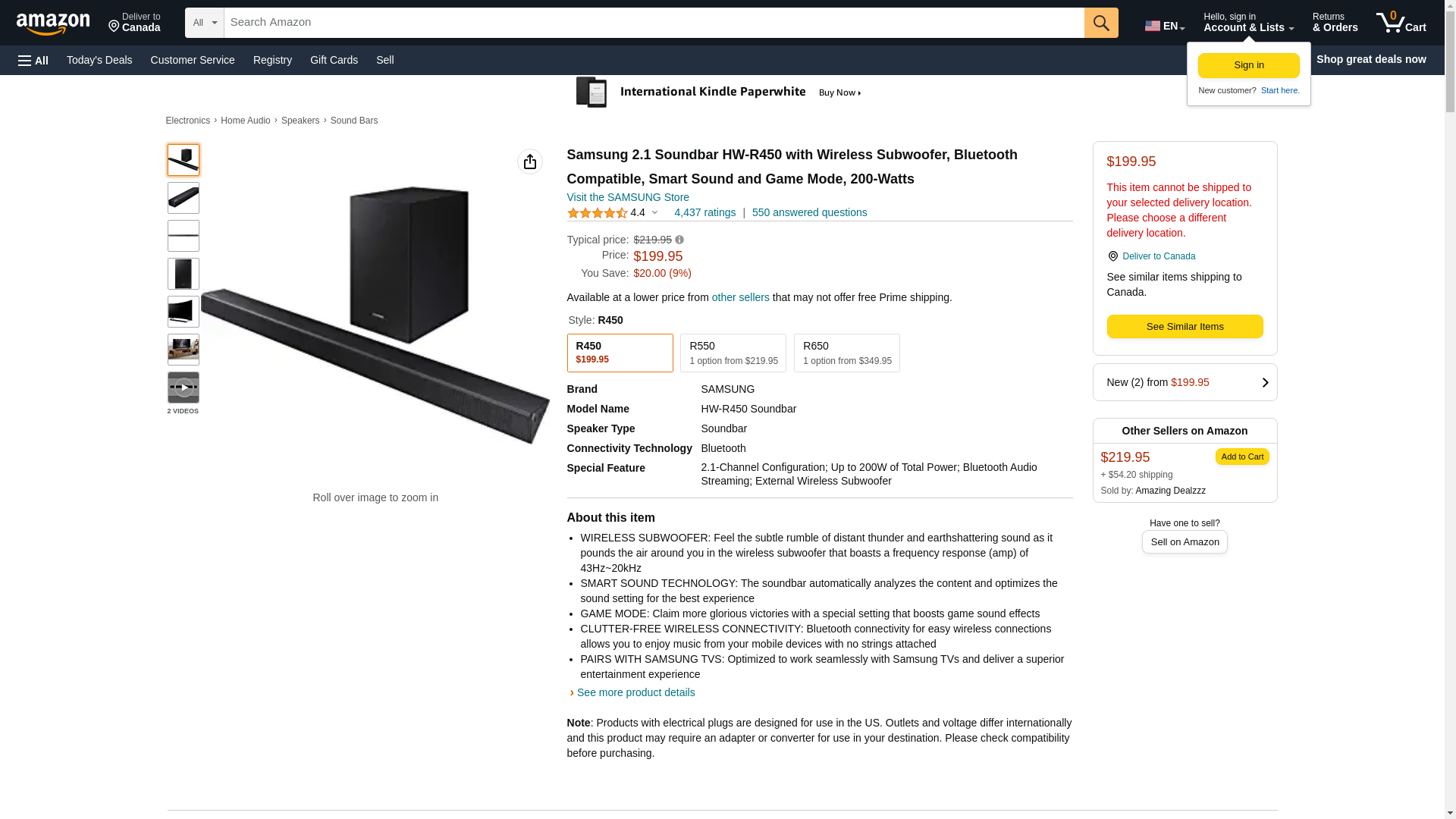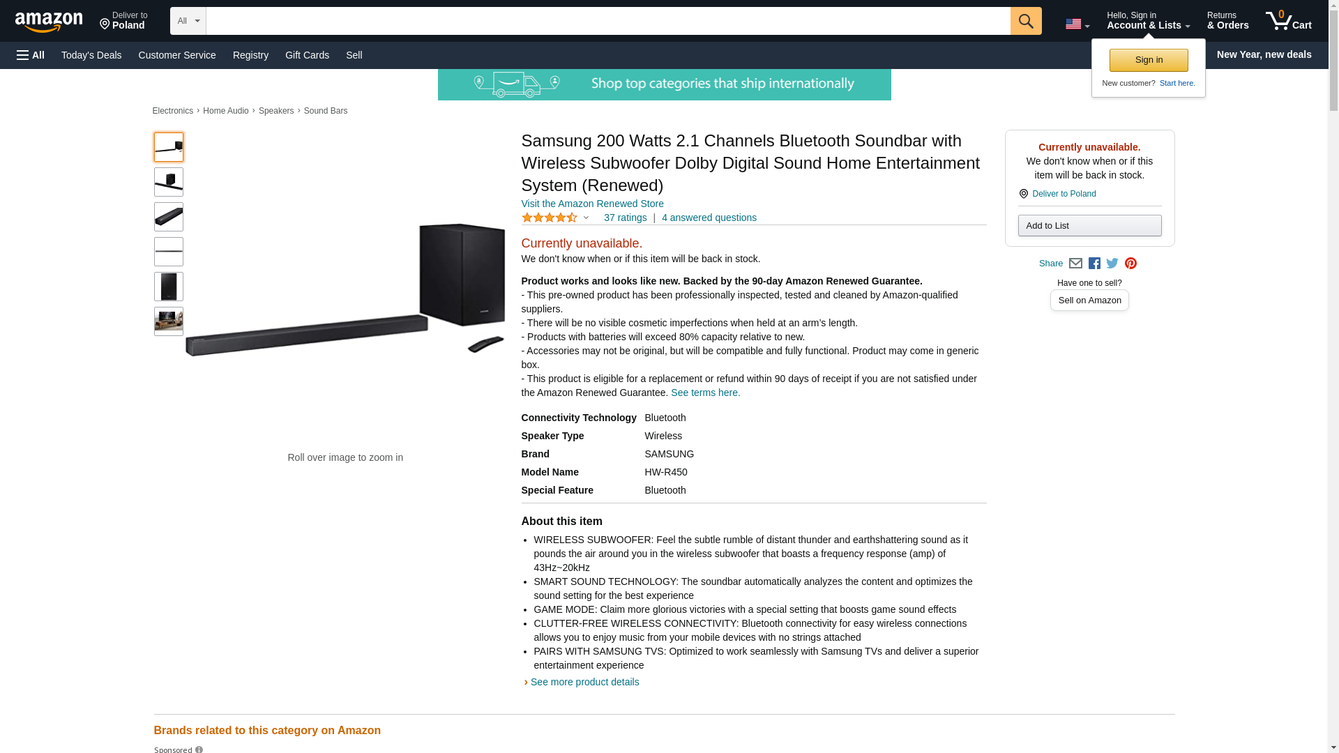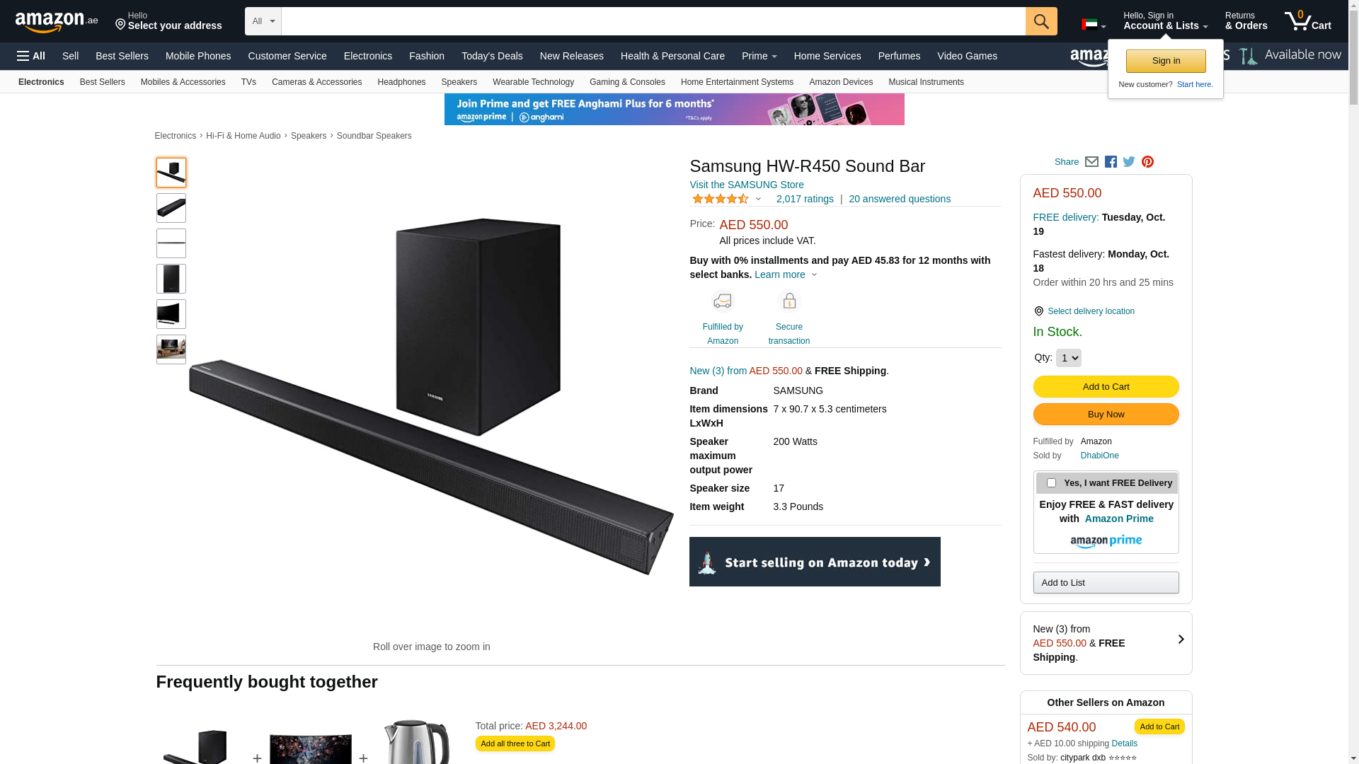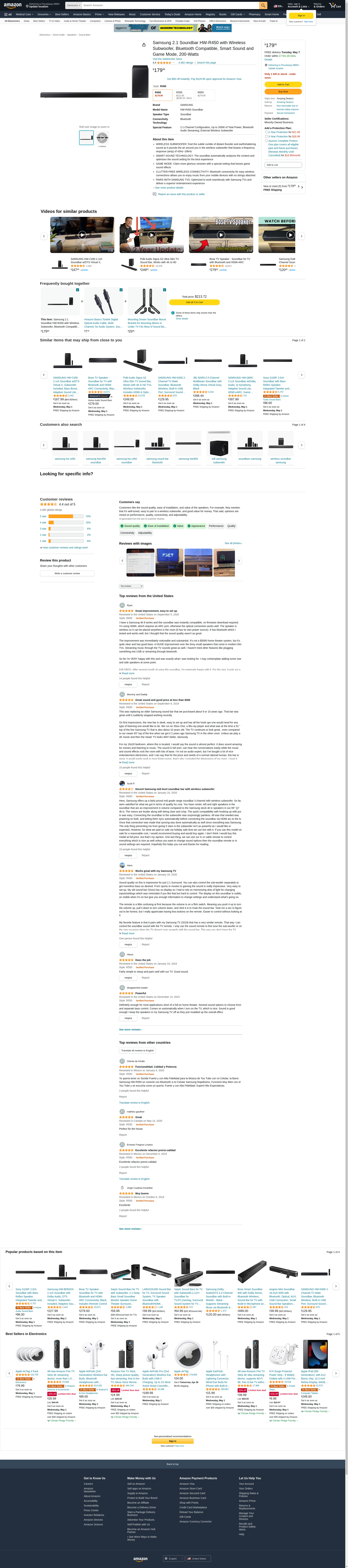 Samsung 2.1 Soundbar HW-R450 with Wireless Subwoofer, Bluetooth Compatible, Smart Sound and Game Mode, 200-Watts