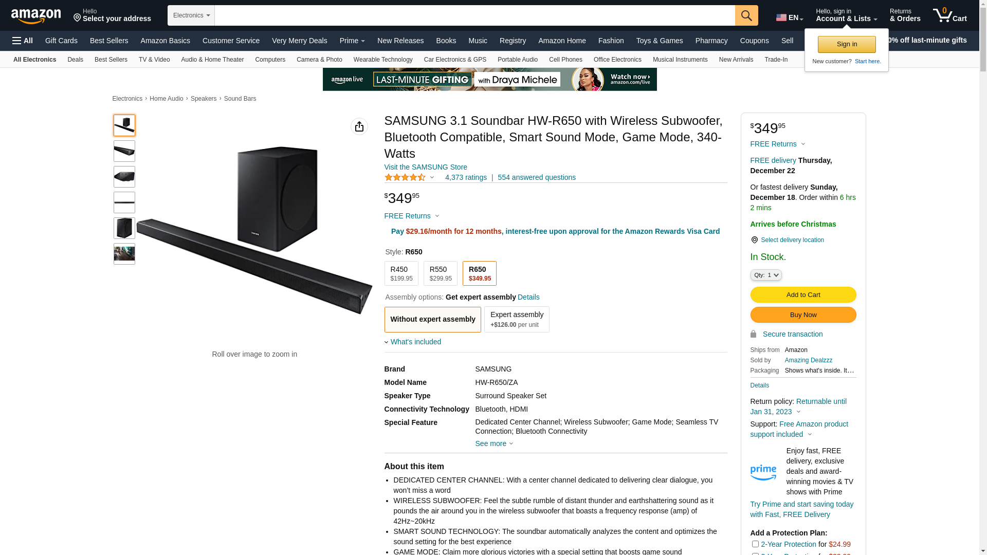 SAMSUNG 3.1 Soundbar HW-R650 with Wireless Subwoofer, Bluetooth Compatible, Smart Sound Mode, Game Mode, 340-Watts
