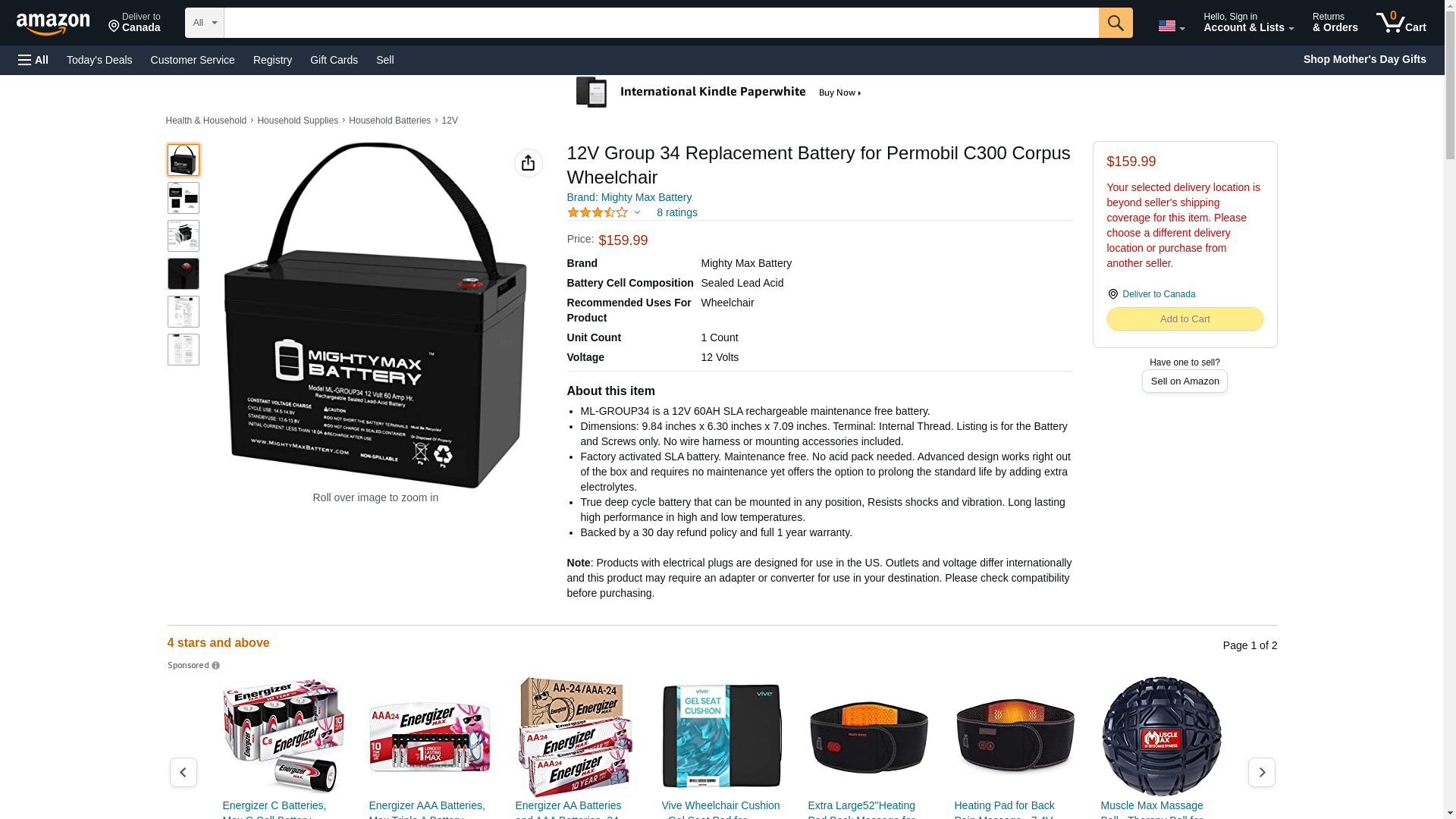 Mighty Max Battery 12V Group 34 Replacement Battery For Permobil C300 Corpus Wheelchair