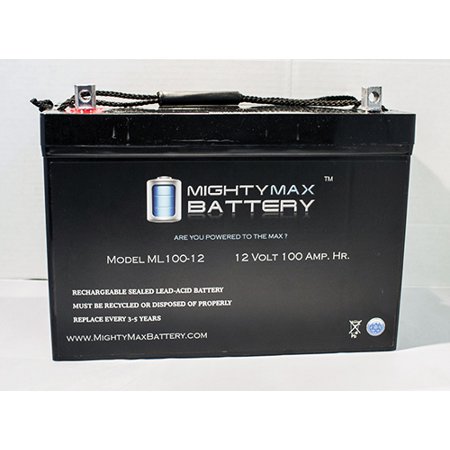 <div> Delivering power when you need it, the Mighty Max ML100-12 12 Volt 100 AH uses a state of the art, heavy-duty, calcium-alloy grid that provides exceptional performance and service life in both float and cyclic applications. </div> <div> <br /> </div> <div> The ML100-12 is an Absorbent Glass Mat (AGM) technology with a valve regulated design, that can be used in enclosed and indoor environments without leaking or maintenance, providing a superior performance for thousands of models. </div> <div> <br /> </div> <div> Mighty Max SLA batteries are utilized in a wide variety of applications including; Consumer Electronics, Electric Vehicles, Engine Starters, Golf Carts, Hunting, Lawn and Garden Tools, Medical Mobility, Motorcycles, Power sports, Portable Tools, Solar, Toys and Hobby, Access Control Devices, Emergency Lighting, Security and more. </div> <div> <br /> </div> <div> <b>Specifications:</b> </div> <div> <br /> </div> <div> Voltage: 12 Volt </div> <div> <br /> </div> <div> Amperage: 100 AH </div> <div> <br /> </div> <div> Chemistry: SLA, AGM </div> <div> <br /> </div> <div> <b>Battery Dimensions:</b> </div> <div> <br /> </div> <div> 12.17 in x 6.61 in x 8.30 in </div> <div> <br /> </div> <div> Weight: 63.93 Lbs </div> <div> <br /> </div> <div> <b>Warranty</b> </div> <div> <br /> </div> <div> 1 Year </div>