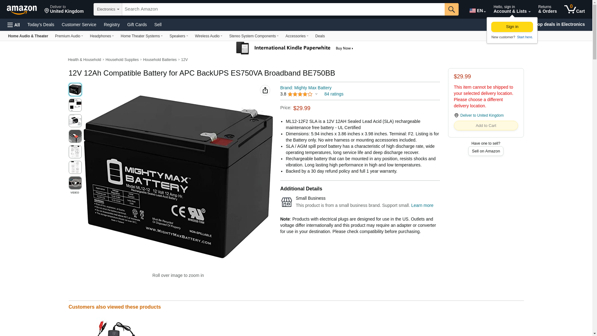 12V 12Ah Compatible Battery for APC BackUPS ES750VA Broadband BE750BB
