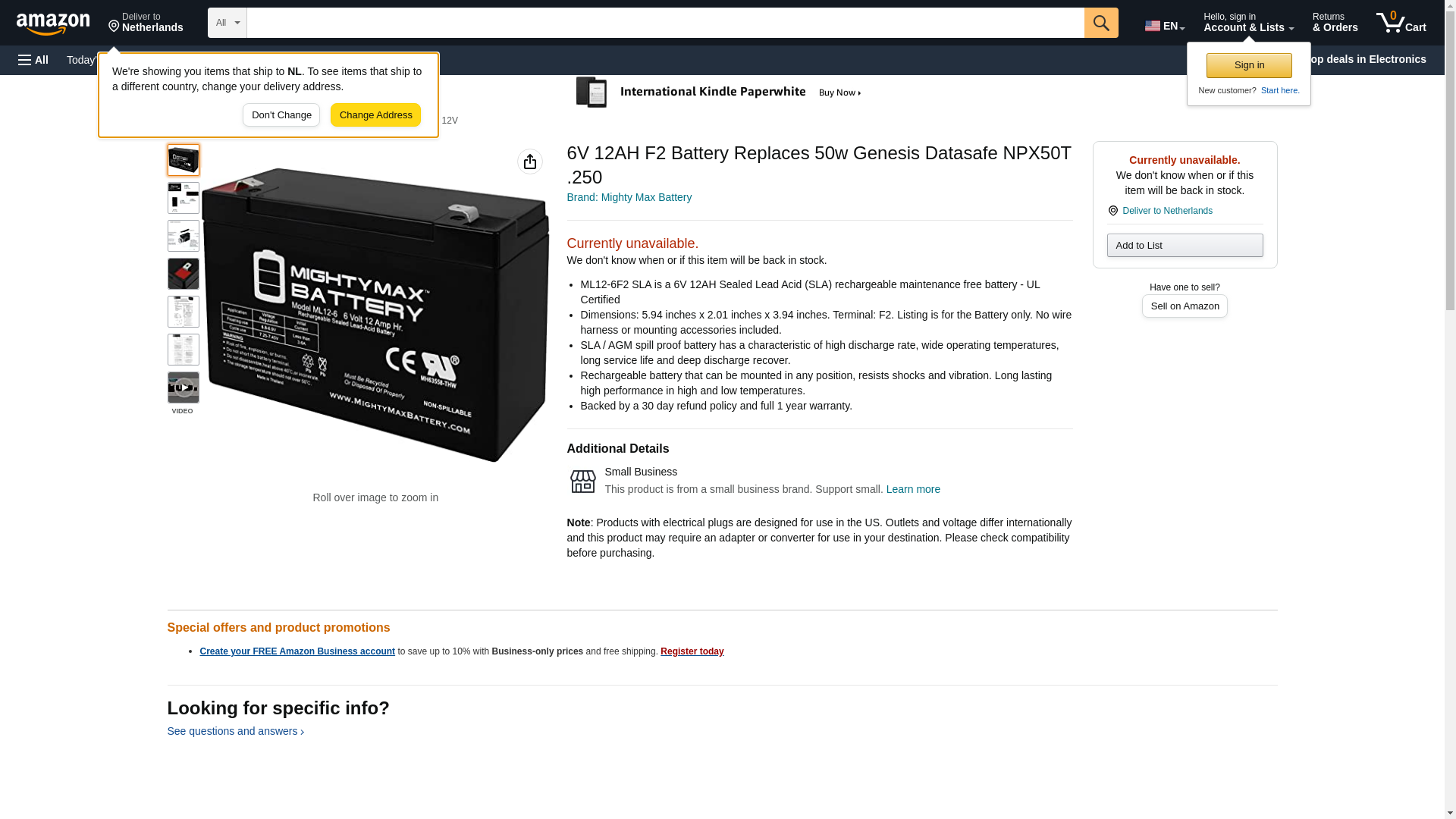 Delivering power when you need it, the Mighty Max ML12-6F2 6 Volt 12 AH uses a state of the art, heavy-duty, calcium-alloy grid that provides exceptional performance and service life in both float and cyclic applications.<br>The ML12-6F2 is an Absorbent Glass Mat (AGM) technology with a valve regulated design, that can be used in enclosed and indoor environments without leaking or maintenance, providing a superior performance for thousands of models.<br>Mighty Max SLA batteries are utilized in a wide variety of applications including; Consumer Electronics, Electric Vehicles, Engine Starters, Golf Carts, Hunting, Lawn and Garden Tools, Medical Mobility, Motorcycles, Power sports, Portable Tools, Solar, Toys and Hobby, Access Control Devices, Emergency Lighting, Security and more.<br><b>Specifications: </b><br>Voltage: 6 Volt<br>Amperage: 12 AH<br>Chemistry: SLA, AGM<br>Terminal: F2<br><b>Battery Dimensions: </b><br>5.94 in x 2.01 in x 3.94 in<br>Weight: 4.06 Lbs<br><b>Warranty</b><br>1 Year <br/>Genuine Mighty Max battery Product