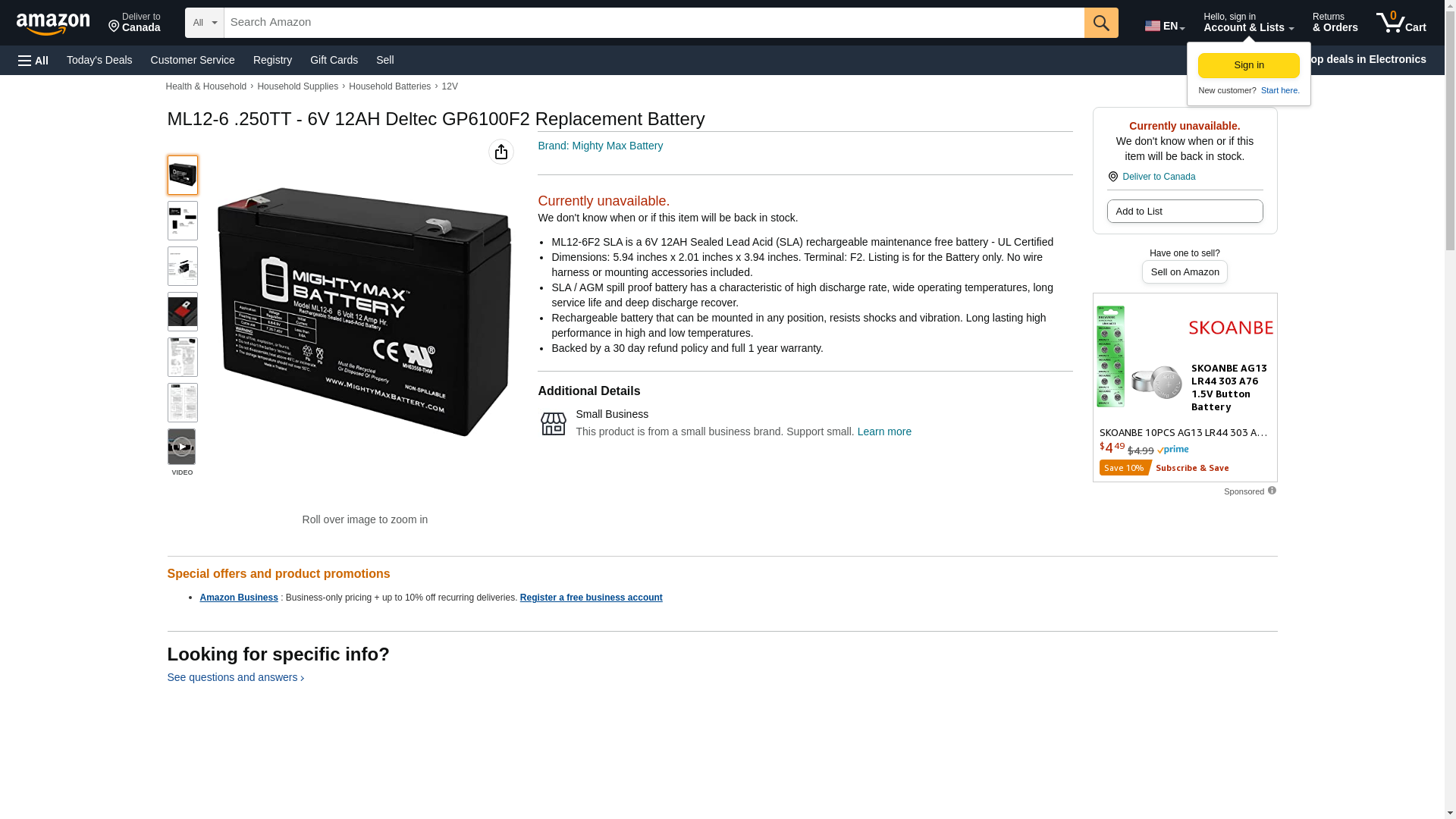 | Manufacturer | Mighty Max Battery |