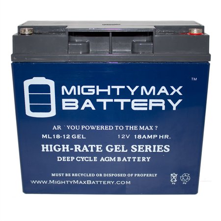 <div> Delivering power when you need it, the Mighty Max ML18-12GEL 12 Volt 18 AH (Maintenance Free) battery. Requires no addition of water during the life of the battery. The Mighty Max ML18-12 GEL is a TRUE DEEP CYCLE battery that can be mounted in any position, requires no maintenance. When a Gel Cell battery is charged, no hazardous fumes escape the battery case, gases are processed within the battery itself. </div> <div> <br /> </div> <div> Mighty Max GEL batteries are utilized in a wide variety of applications including; Consumer Electronics, Electric Vehicles, Engine Starters, Golf Carts, Hunting, Lawn and Garden Tools, Medical Mobility, Motorcycles, Power sports, Portable Tools, Solar, Toys and Hobby, Access Control Devices, Emergency Lighting, Security and more </div> <div> <br /> </div> <div> Specifications: </div> <div> <br /> </div> <div> Voltage: 12 Volt </div> <div> <br /> </div> <div> Amperage: 18 AH </div> <div> <br /> </div> <div> Chemistry: GEL </div> <div> <br /> </div> <div> Terminal: Internal Thread </div> <div> <br /> </div> <div> Battery Dimensions: </div> <div> <br /> </div> <div> 7.13 in x 3.01 in x 6.57 in </div> <div> <br /> </div> <div> Weight: 11.90 Lbs </div> <div> <br /> </div> <div> Warranty </div> <div> <br /> </div> <div> 1 Year </div>