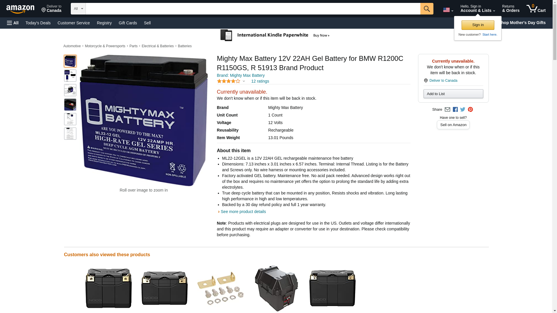 Mighty Max Battery 12V 22AH Gel Battery for BMW R1200C R1150GS, R 51913 Brand Product