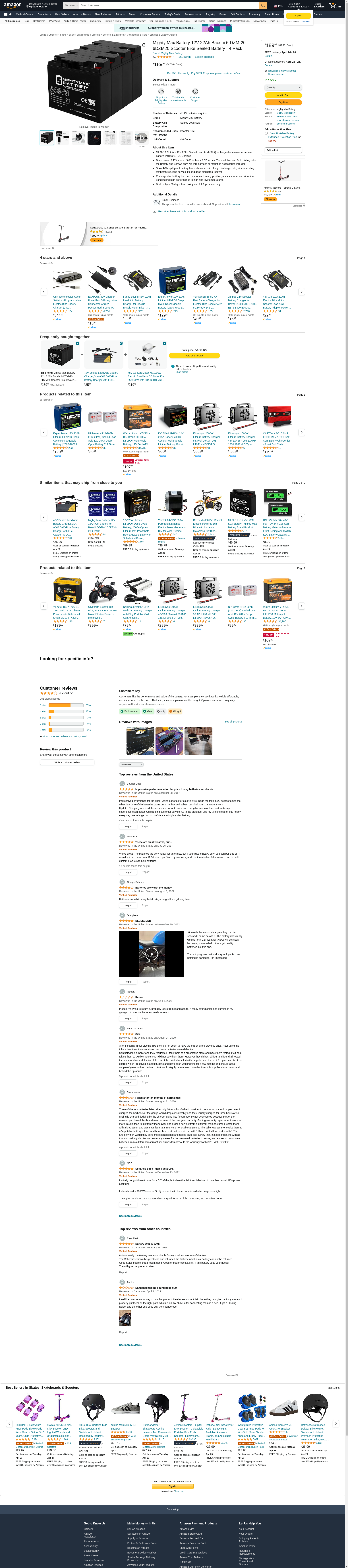 Mighty Max Battery 12V 22Ah Baoshi 6-DZM-20 6DZM20 Scooter Bike Sealed Battery - 4 Pack