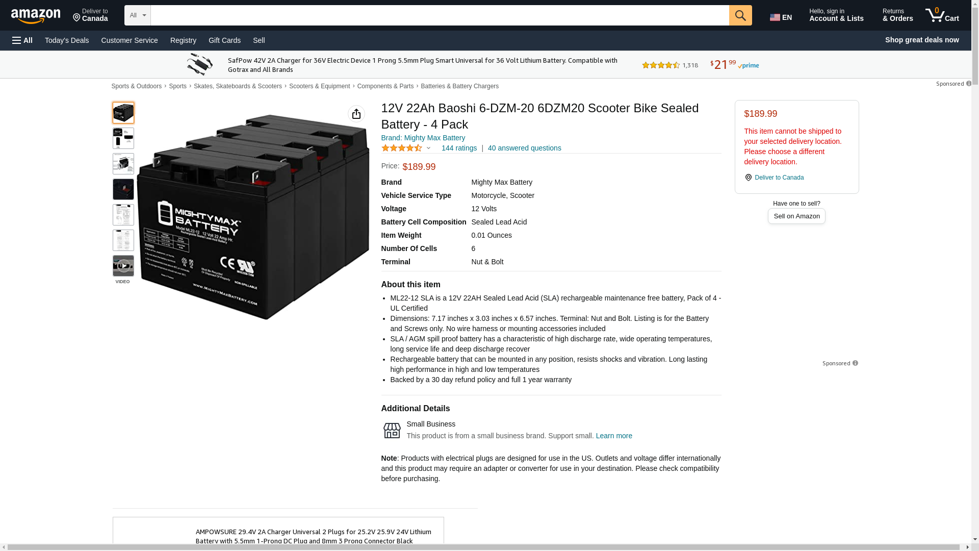 - ML22-12 SLA is a 12V 22AH Sealed Lead Acid (SLA) rechargeable maintenance free battery, Pack of 4 - UL Certified