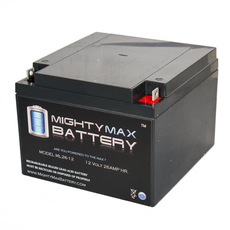 Delivering power when you need it, the Mighty Max ML26-12 12 Volt 26 AH uses a state of the art, heavy-duty, calcium-alloy grid that provides exceptional performance and service life in both float and cyclic applications.<br>The ML26-12 is an Absorbent Glass Mat (AGM) technology with a valve regulated design, that can be used in enclosed and indoor environments without leaking or maintenance, providing a superior performance for thousands of models.<br>Mighty Max SLA batteries are utilized in a wide variety of applications including; Consumer Electronics, Electric Vehicles, Engine Starters, Golf Carts, Hunting, Lawn and Garden Tools, Medical Mobility, Motorcycles, Power sports, Portable Tools, Solar, Toys and Hobby, Access Control Devices, Emergency Lighting, Security and more.<br><b>Specifications:</b><br>Voltage: 12 Volt<br>Amperage: 26 AH<br>Chemistry: SLA, AGM<br>Terminal: T3<br><b>Battery Dimensions:</b><br>6.54 in x 6.89 in x 4.92 in<br>Weight: 18.10 Lbs<br><b>Warranty</b><br>1 Year <br/>Genuine Mighty Max battery Product
