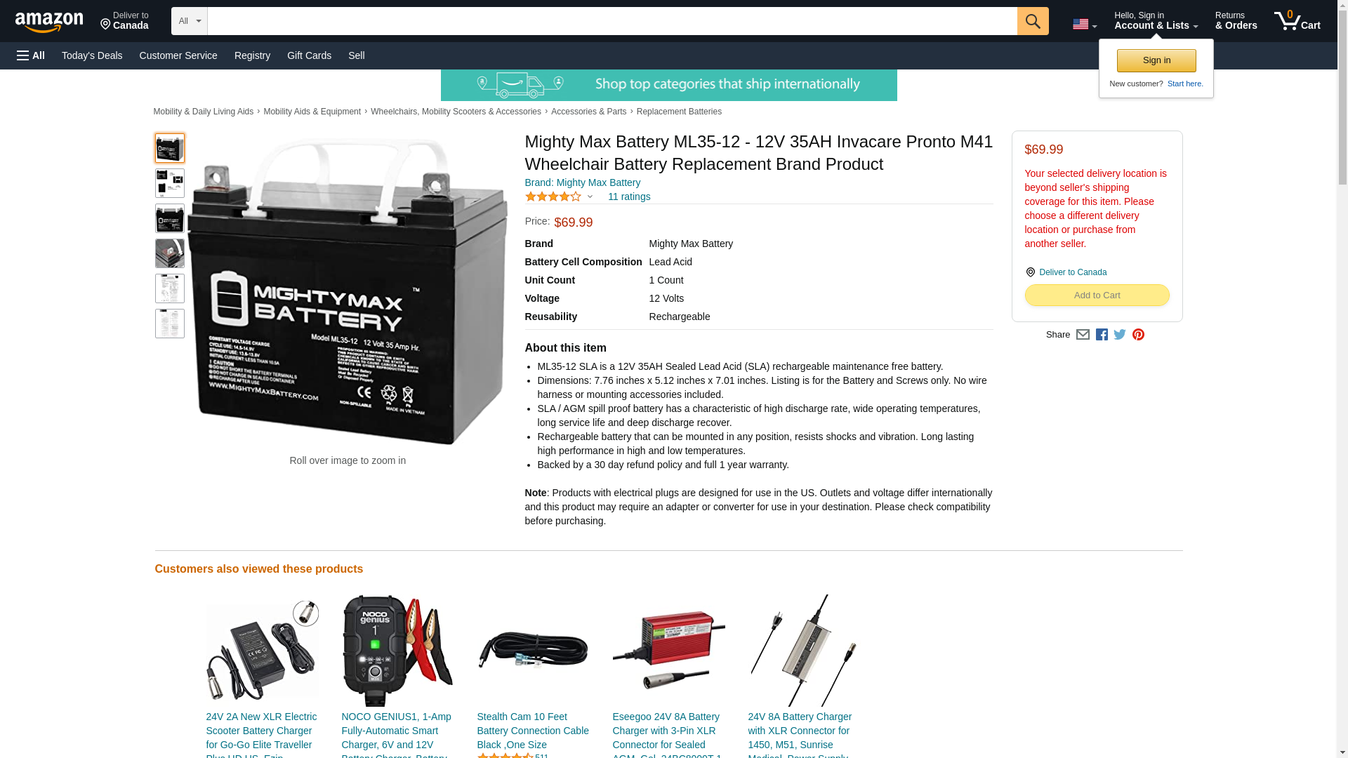 - ML35-12 SLA is a 12V 35AH Sealed Lead Acid (SLA) rechargeable maintenance free battery - UL Certified