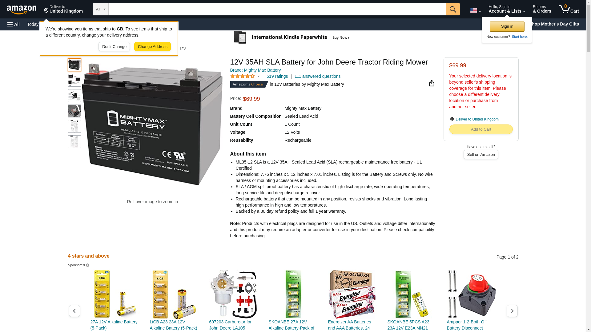 Mighty Max Battery 12V 35AH SLA Battery for John Deere Tractor Riding Mower