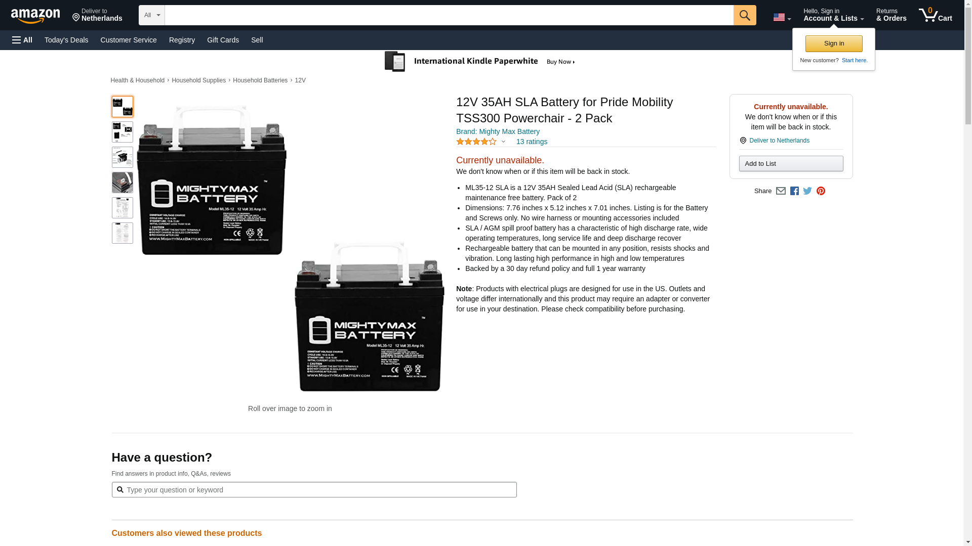 Mighty Max Battery 12V 35AH SLA Battery For Pride Mobility TSS300 Powerchair - 2 Pack
