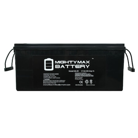 Delivering power when you need it, the Mighty Max ML4D 12 Volt 200 AH uses a state of the art, heavy-duty, calcium-alloy grid that provides exceptional performance and service life in both float and cyclic applications.<br>The ML4D is an Absorbent Glass Mat (AGM) technology with a valve regulated design, that can be used in enclosed and indoor environments without leaking or maintenance, providing a superior performance for thousands of models.<br>Mighty Max SLA batteries are utilized in a wide variety of applications including; Consumer Electronics, Electric Vehicles, Engine Starters, Golf Carts, Hunting, Lawn and Garden Tools, Medical Mobility, Motorcycles, Power sports, Portable Tools, Solar, Toys and Hobby, Access Control Devices, Emergency Lighting, Security and more.<br>Specifications: <br>Voltage: 12 Volt<br>Amperage: 200 AH<br>Chemistry: SLA, AGM<br>Battery Dimensions: <br>20.87 in x 9.45 in x 8.74 in<br>Weight: 114.60 Lbs<br>Warranty<br>1 Year. <br/>Genuine Mighty Max battery Product