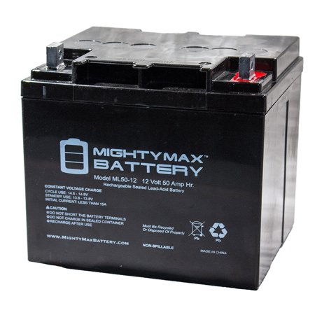 <div> Delivering power when you need it, the Mighty Max ML50-12 12 Volt 50 AH uses a state of the art, heavy-duty, calcium-alloy grid that provides exceptional performance and service life in both float and cyclic applications. </div> <div> <br /> </div> <div> The ML50-12 is an Absorbent Glass Mat (AGM) technology with a valve regulated design, that can be used in enclosed and indoor environments without leaking or maintenance, providing a superior performance for thousands of models. </div> <div> <br /> </div> <div> Mighty Max SLA batteries are utilized in a wide variety of applications including; Consumer Electronics, Electric Vehicles, Engine Starters, Golf Carts, Hunting, Lawn and Garden Tools, Medical Mobility, Motorcycles, Power sports, Portable Tools, Solar, Toys and Hobby, Access Control Devices, Emergency Lighting, Security and more. </div> <div> <br /> </div> <div> <b>Specifications:</b> </div> <div> <br /> </div> <div> Voltage: 12 Volt </div> <div> <br /> </div> <div> Amperage: 50 AH </div> <div> <br /> </div> <div> Chemistry: SLA, AGM </div> <div> <br /> </div> <div> <b>Battery Dimensions: </b> </div> <div> <br /> </div> <div> 7.22 in x 6.50 in x 6.89 in </div> <div> <br /> </div> <div> Weight: 30.02 Lbs </div> <div> <br /> </div> <div> <b>Warranty</b> </div> <div> <br /> </div> <div> 1 Year </div>