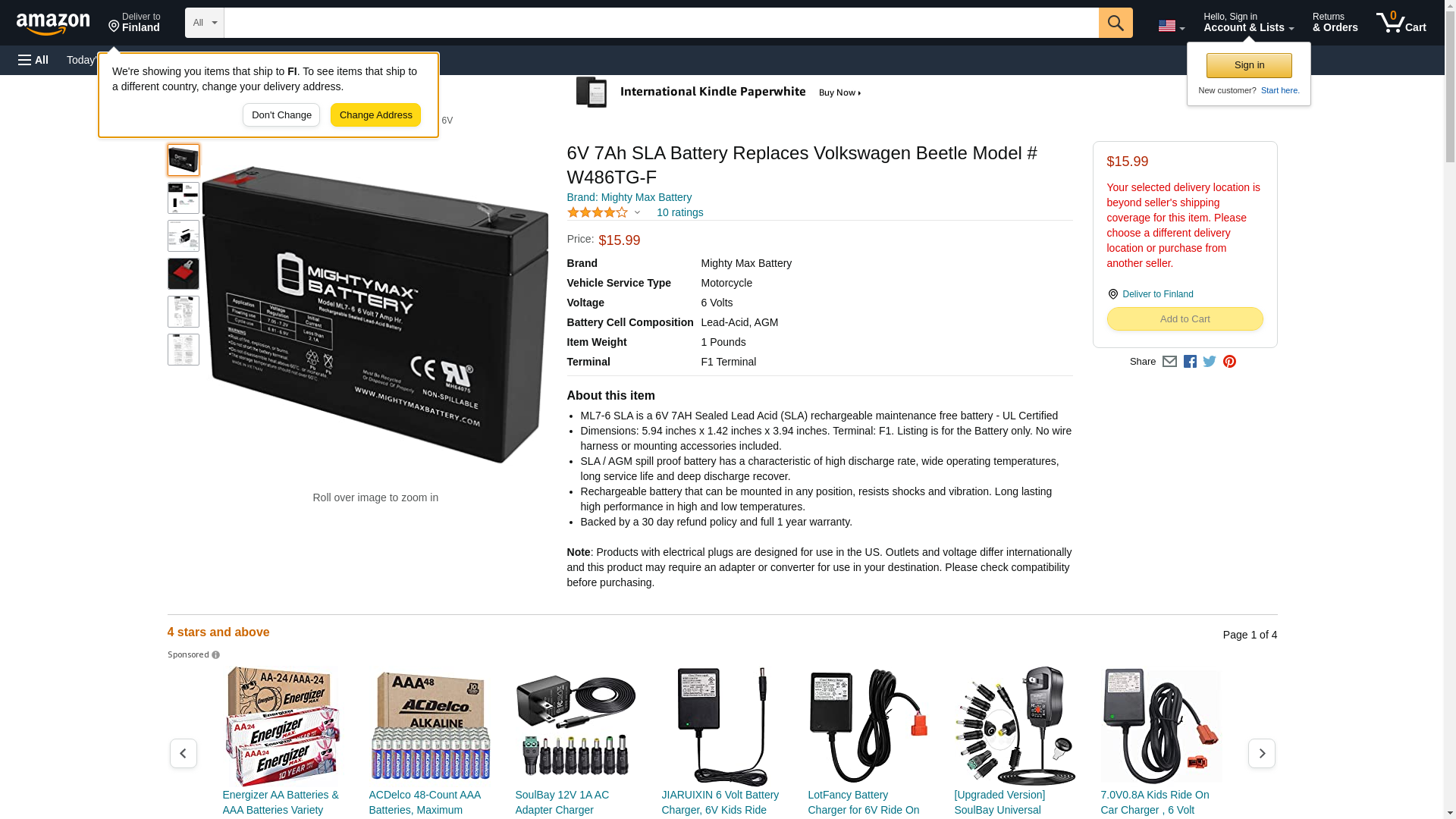 Mighty Max Battery 6V 7Ah SLA Battery Replaces Volkswagen Beetle Model # W486TG-F