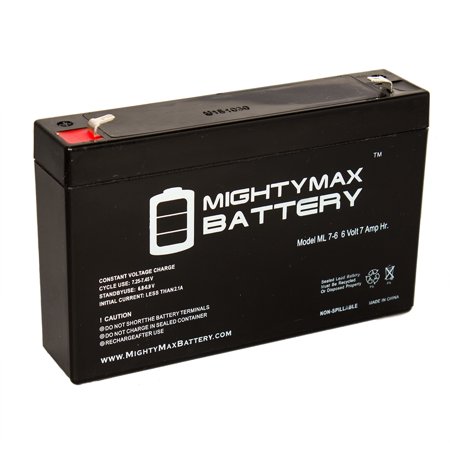 <div> Delivering power when you need it, the Mighty Max ML7-6 6 Volt 7 AH uses a state of the art, heavy-duty, calcium-alloy grid that provides exceptional performance and service life in both float and cyclic applications. </div> <div> <br /> </div> <div> The ML7-6 is an Absorbent Glass Mat (AGM) technology with a valve regulated design, that can be used in enclosed and indoor environments without leaking or maintenance, providing a superior performance for thousands of models. </div> <div> <br /> </div> <div> Mighty Max SLA batteries are utilized in a wide variety of applications including; Consumer Electronics, Electric Vehicles, Engine Starters, Golf Carts, Hunting, Lawn and Garden Tools, Medical Mobility, Motorcycles, Power sports, Portable Tools, Solar, Toys and Hobby, Access Control Devices, Emergency Lighting, Security and more. </div> <div> <br /> </div> <div> <b>Specifications: </b> </div> <div> <br /> </div> <div> Voltage: 6 Volt </div> <div> <br /> </div> <div> Amperage: 7 AH </div> <div> <br /> </div> <div> Chemistry: SLA, AGM </div> <div> <br /> </div> <div> Terminal: F1 </div> <div> <br /> </div> <div> <b>Battery Dimensions:</b> </div> <div> <br /> </div> <div> 5.94 in x 1.34 in x 3.94 in </div> <div> <br /> </div> <div> Weight: 2.43 Lbs </div> <div> <br /> </div> <div> <b>Warranty</b> </div> <div> <br /> </div> <div> 1 Year </div>