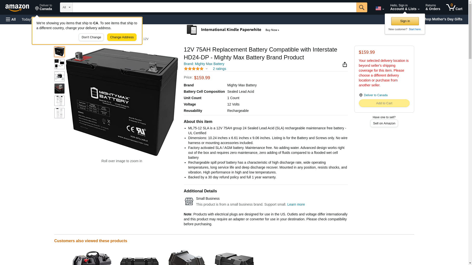 Mighty Max Battery 12V 75AH Replacement Battery Compatible with Interstate HD24-DP
